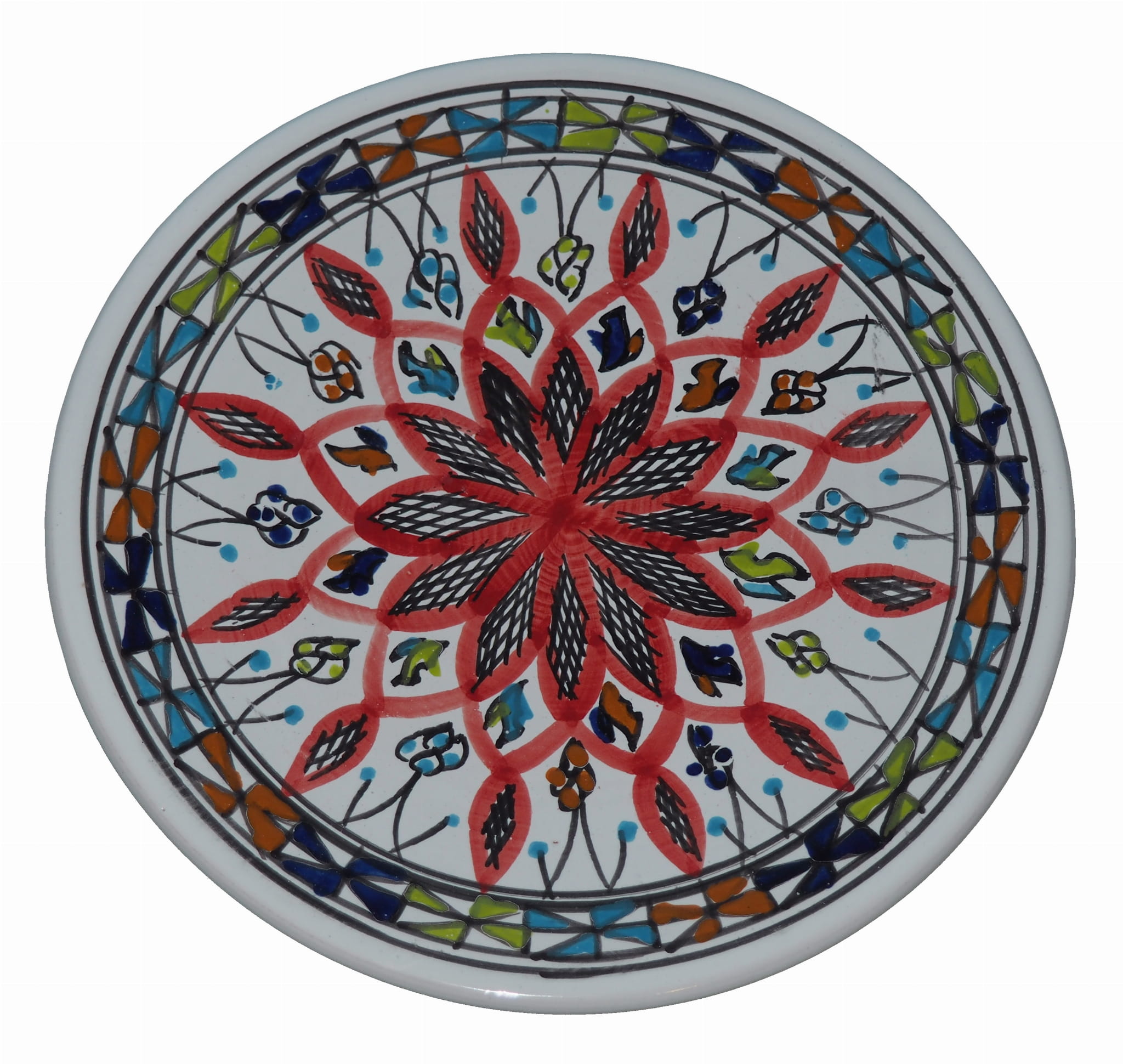 Ten orientalny talerz malowany jest w berberyjskie wzory. Przepiękna, niebanalna ozdoba Twojego stołu - ozdobny talerz prosto z Tunezji.