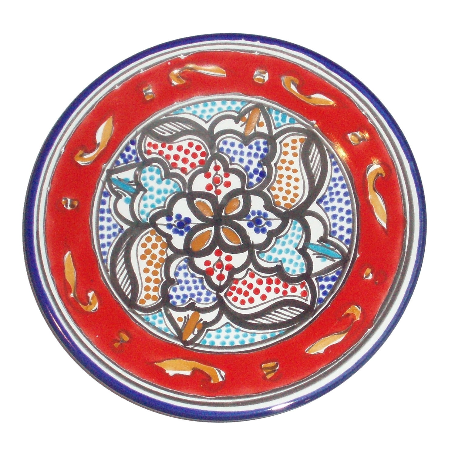 Ten orientalny talerz malowany jest w berberyjskie wzory. Przepiękna, niebanalna ozdoba Twojego stołu - ozdobny talerz prosto z Tunezji.