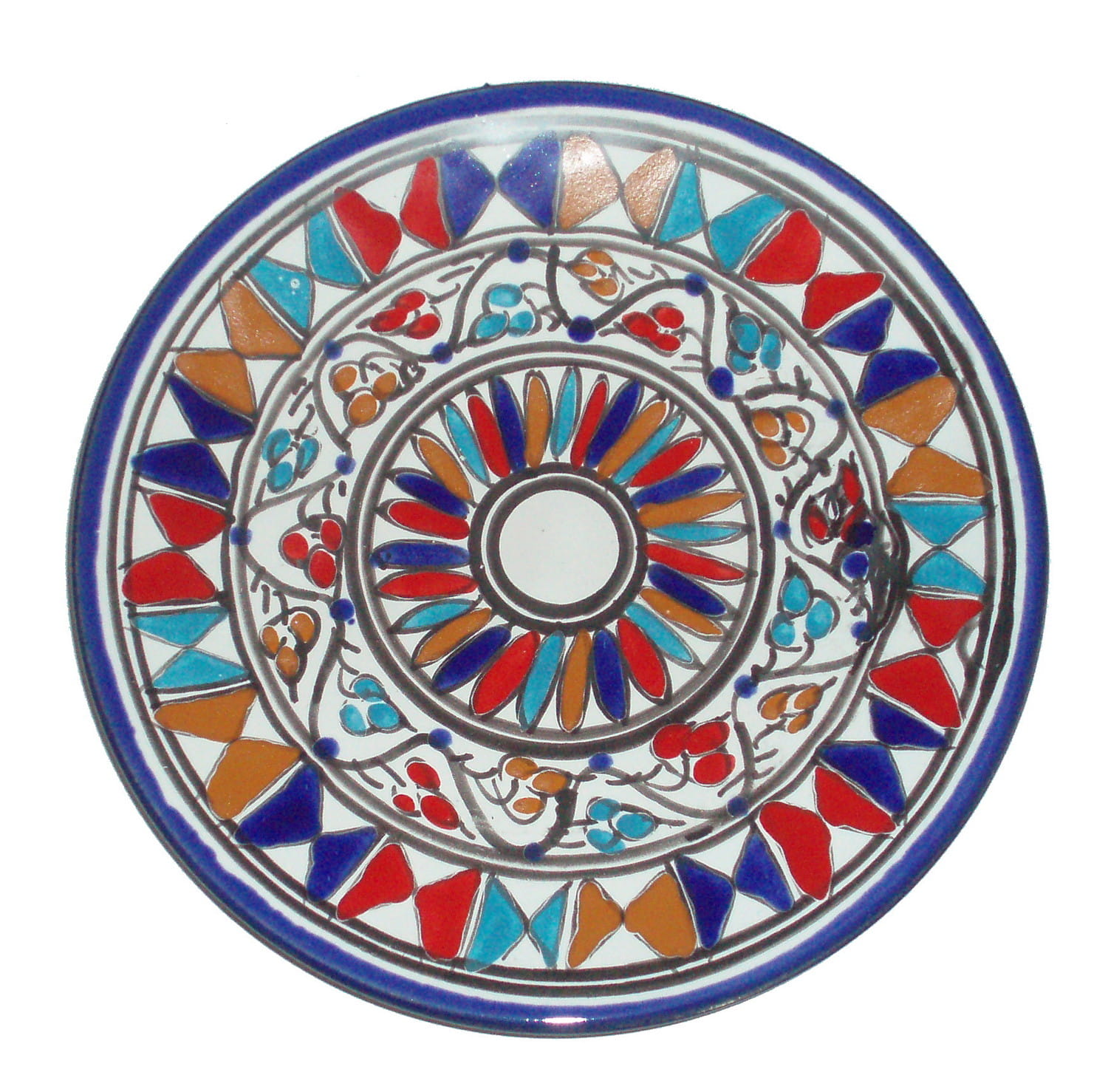 Ten orientalny talerz malowany jest w berberyjskie wzory. Przepiękna, niebanalna ozdoba Twojego stołu - ozdobny talerz prosto z Tunezji.