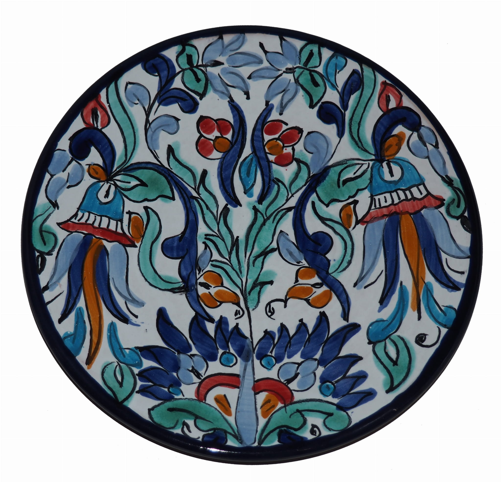 Ten orientalny talerz malowany jest w berberyjskie wzory. Przepiękna, niebanalna ozdoba Twojego stołu - ozdobny talerz prosto z Tunezji.