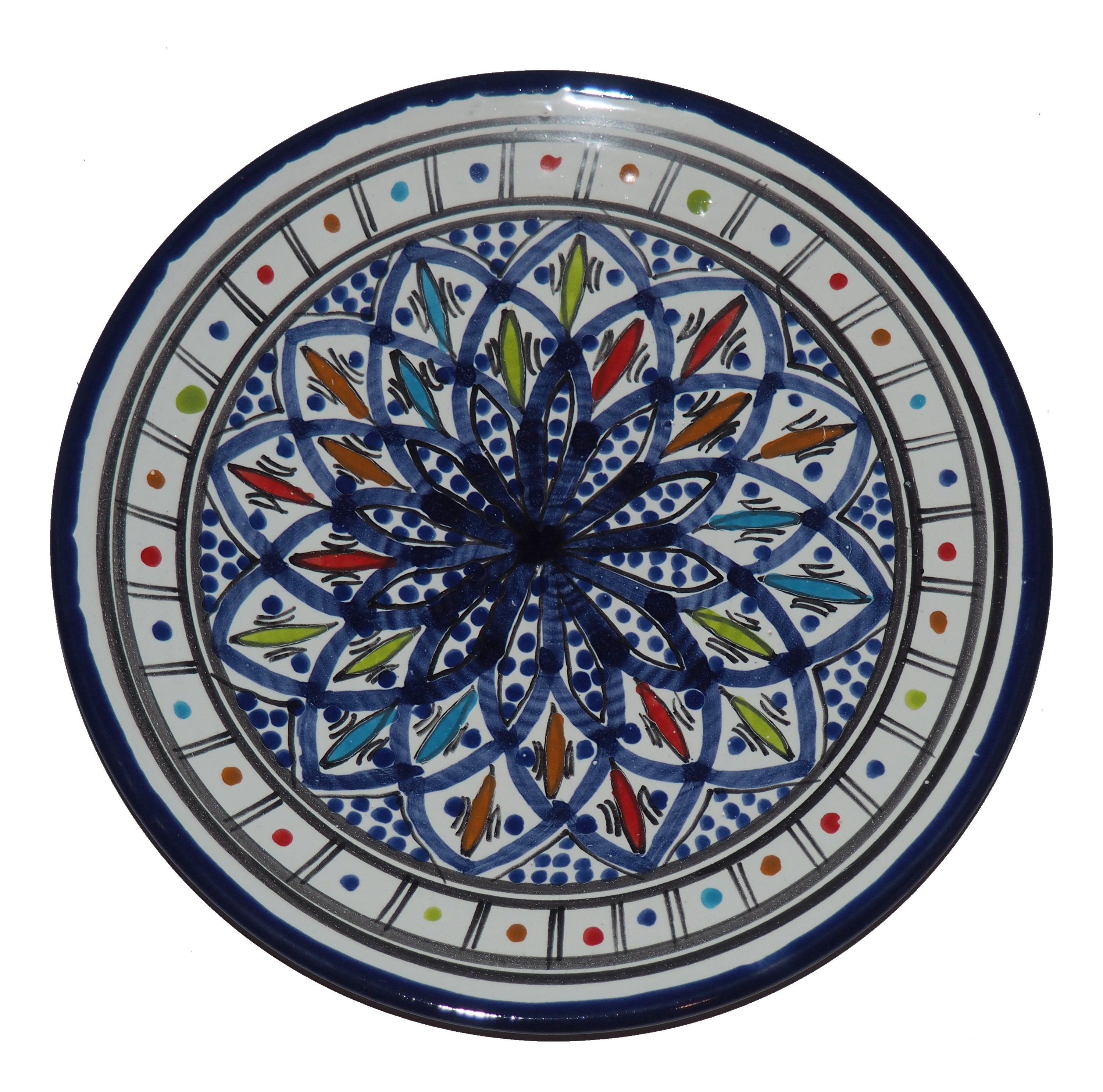 Ten orientalny talerz malowany jest w berberyjskie wzory. Przepiękna, niebanalna ozdoba Twojego stołu - ozdobny talerz prosto z Tunezji.