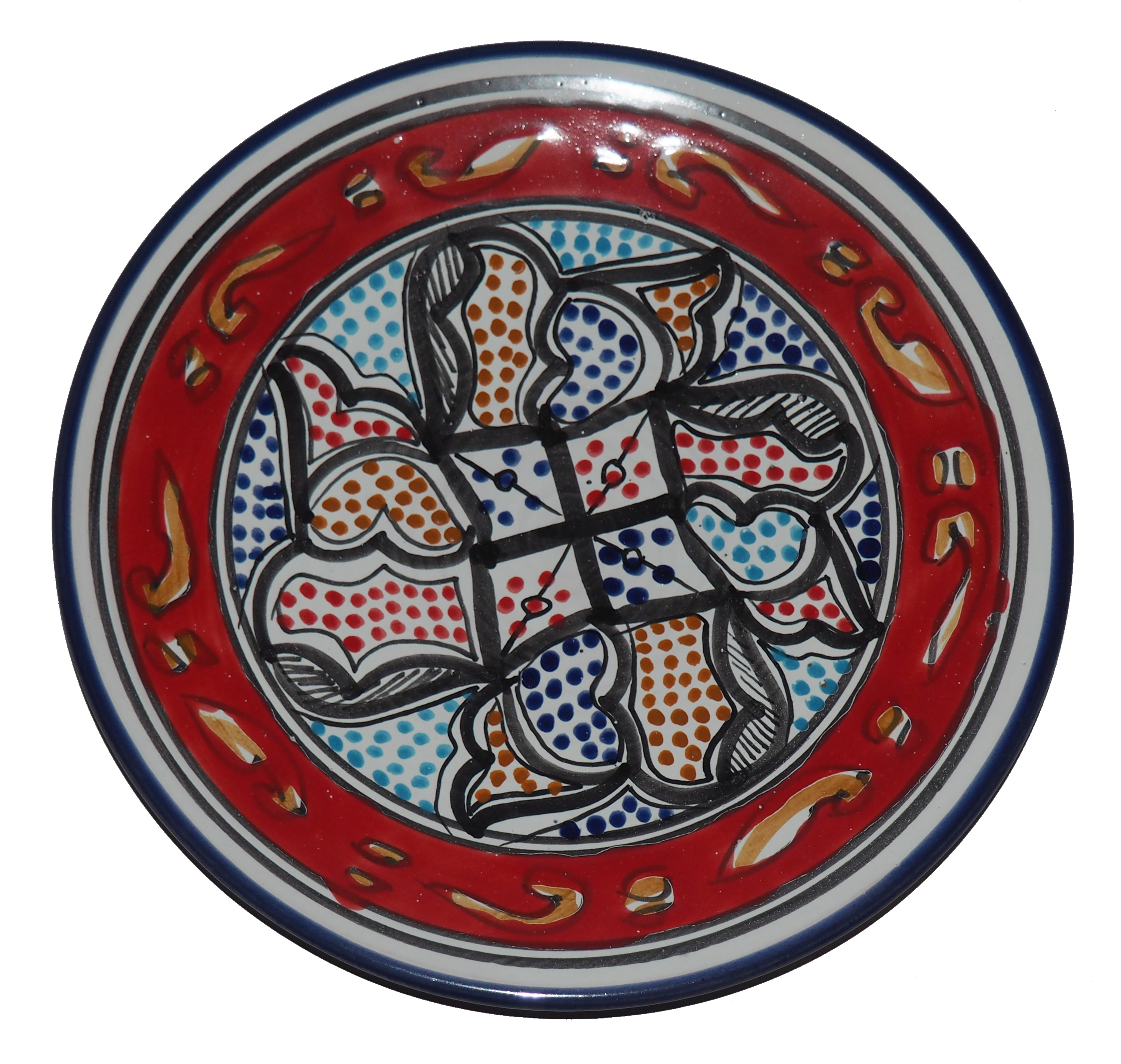 Ten orientalny talerz malowany jest w berberyjskie wzory. Przepiękna, niebanalna ozdoba Twojego stołu - ozdobny talerz prosto z Tunezji.