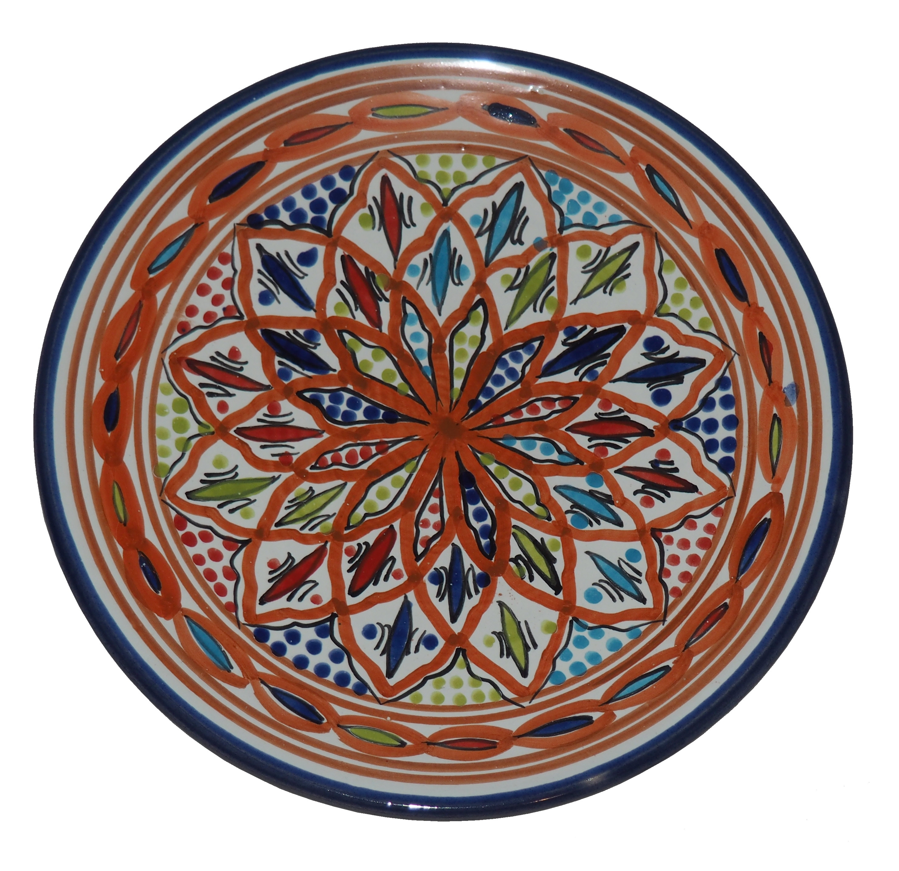 Ten orientalny talerz malowany jest w berberyjskie wzory. Przepiękna, niebanalna ozdoba Twojego stołu - ozdobny talerz prosto z Tunezji.