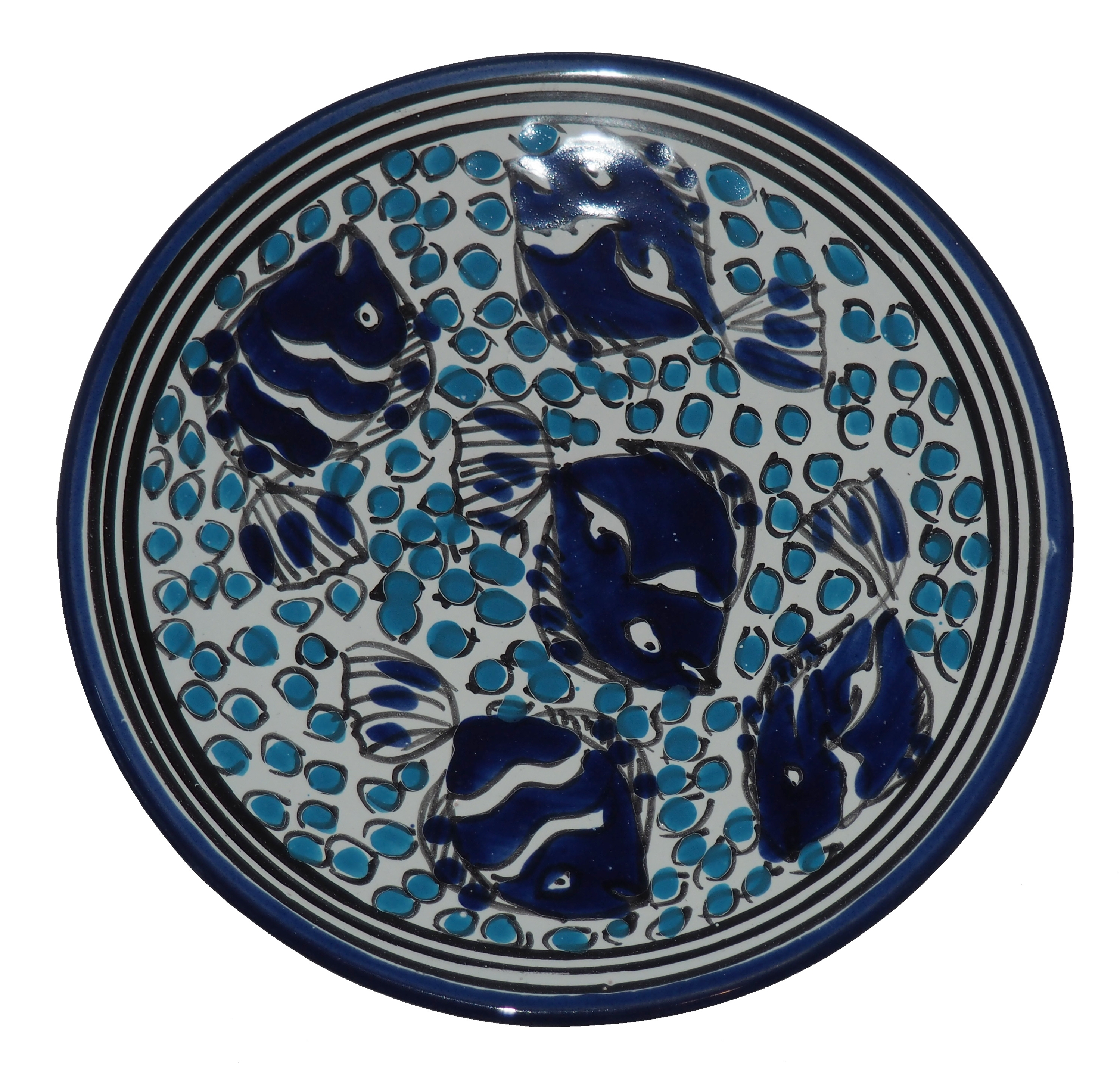 Ten orientalny talerz malowany jest w berberyjskie wzory. Przepiękna, niebanalna ozdoba Twojego stołu - ozdobny talerz prosto z Tunezji.