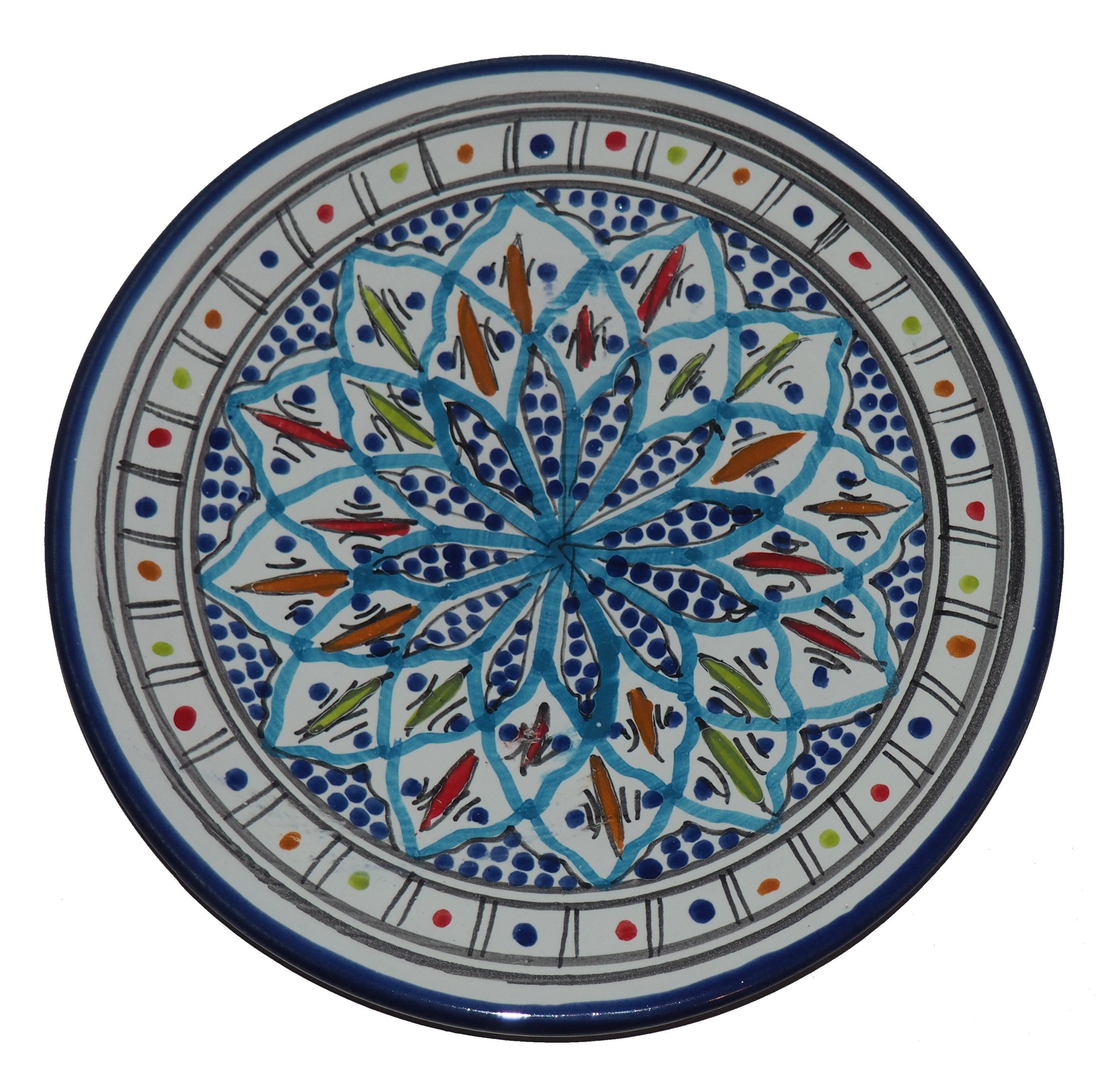 Ten orientalny talerz malowany jest w berberyjskie wzory. Przepiękna, niebanalna ozdoba Twojego stołu - ozdobny talerz prosto z Tunezji.