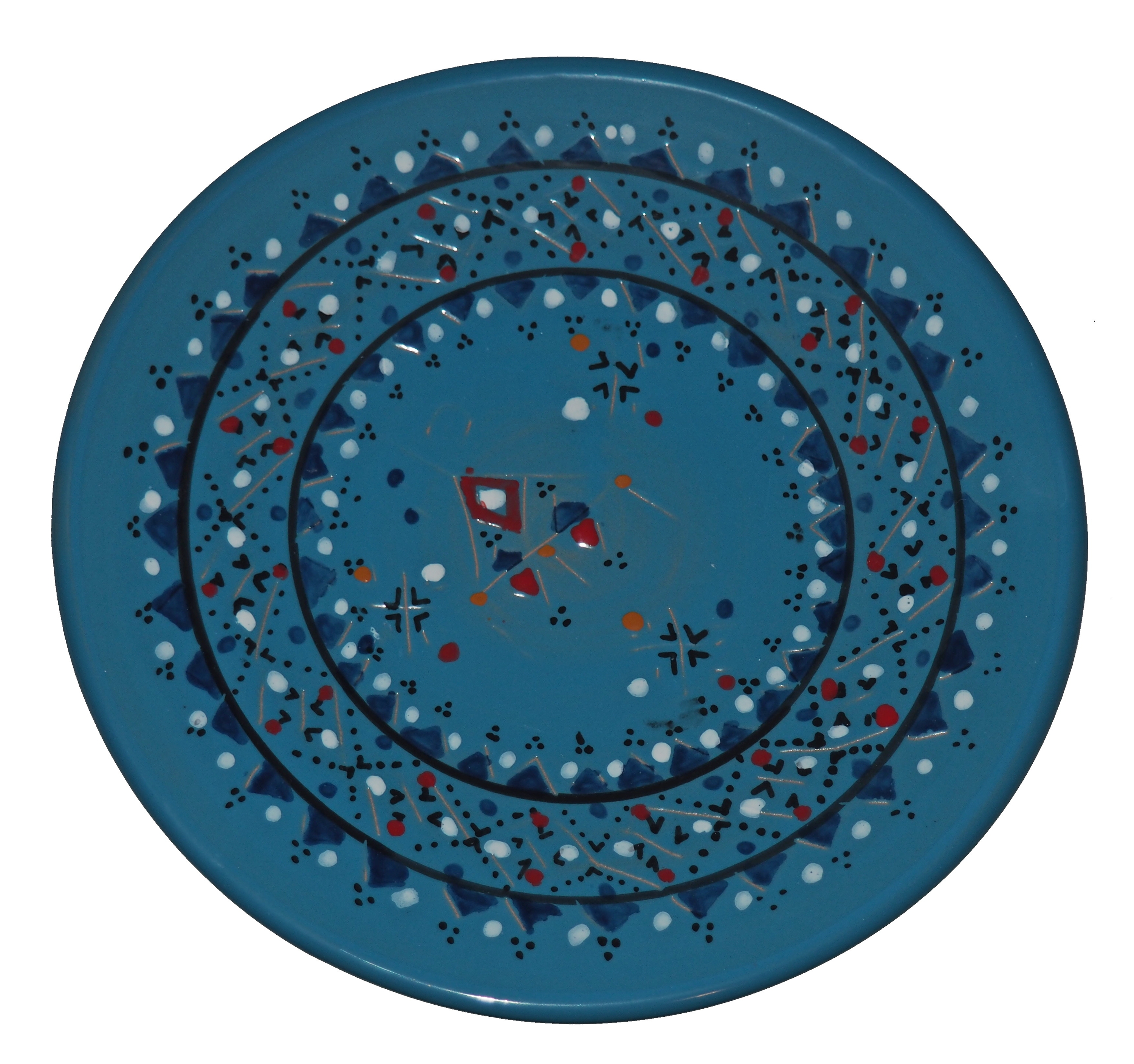 Ten orientalny talerz malowany jest w berberyjskie wzory. Przepiękna, niebanalna ozdoba Twojego stołu - ozdobny talerz prosto z Tunezji.