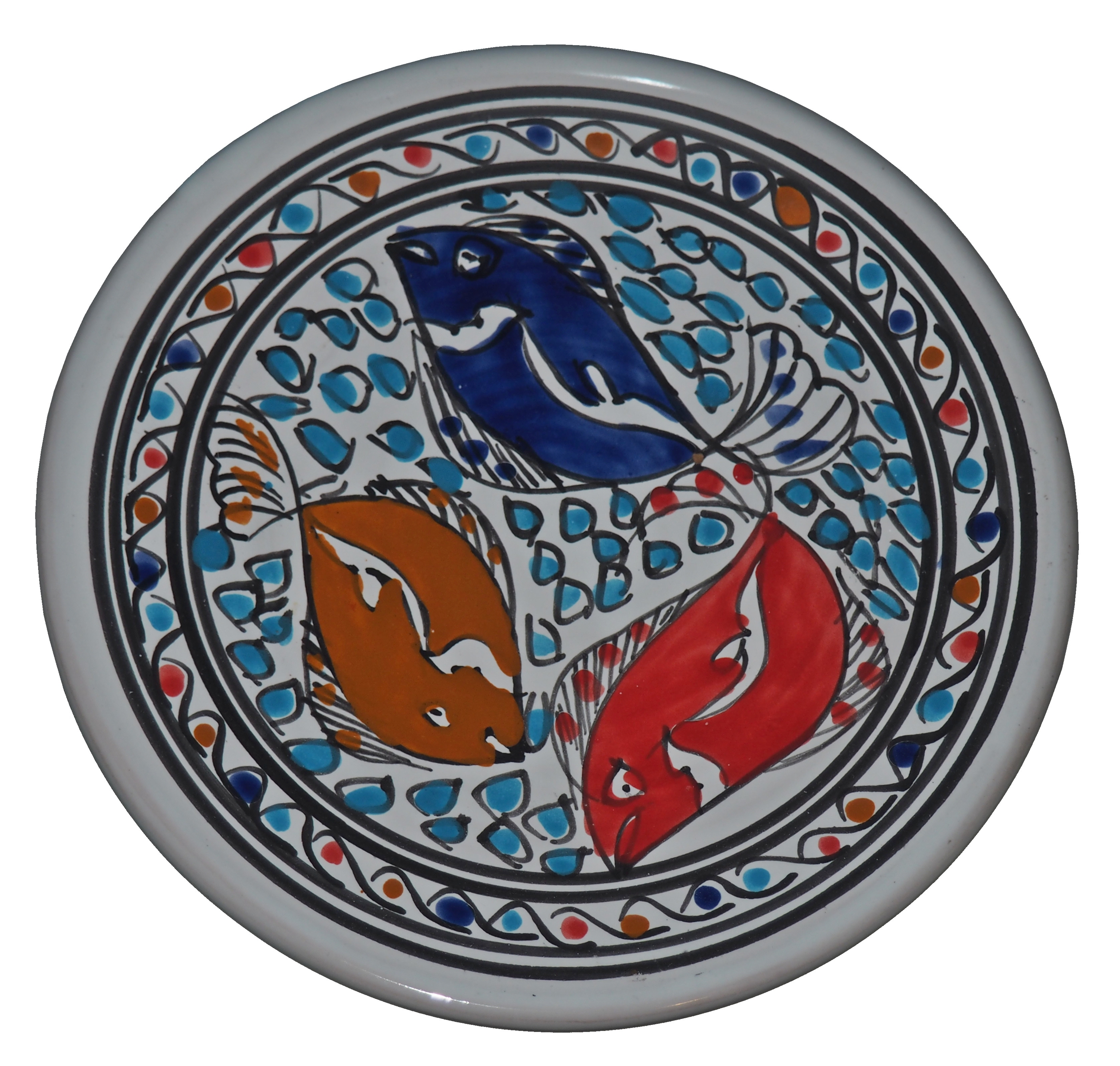 Ten orientalny talerz malowany jest w berberyjskie wzory. Przepiękna, niebanalna ozdoba Twojego stołu - ozdobny talerz prosto z Tunezji.