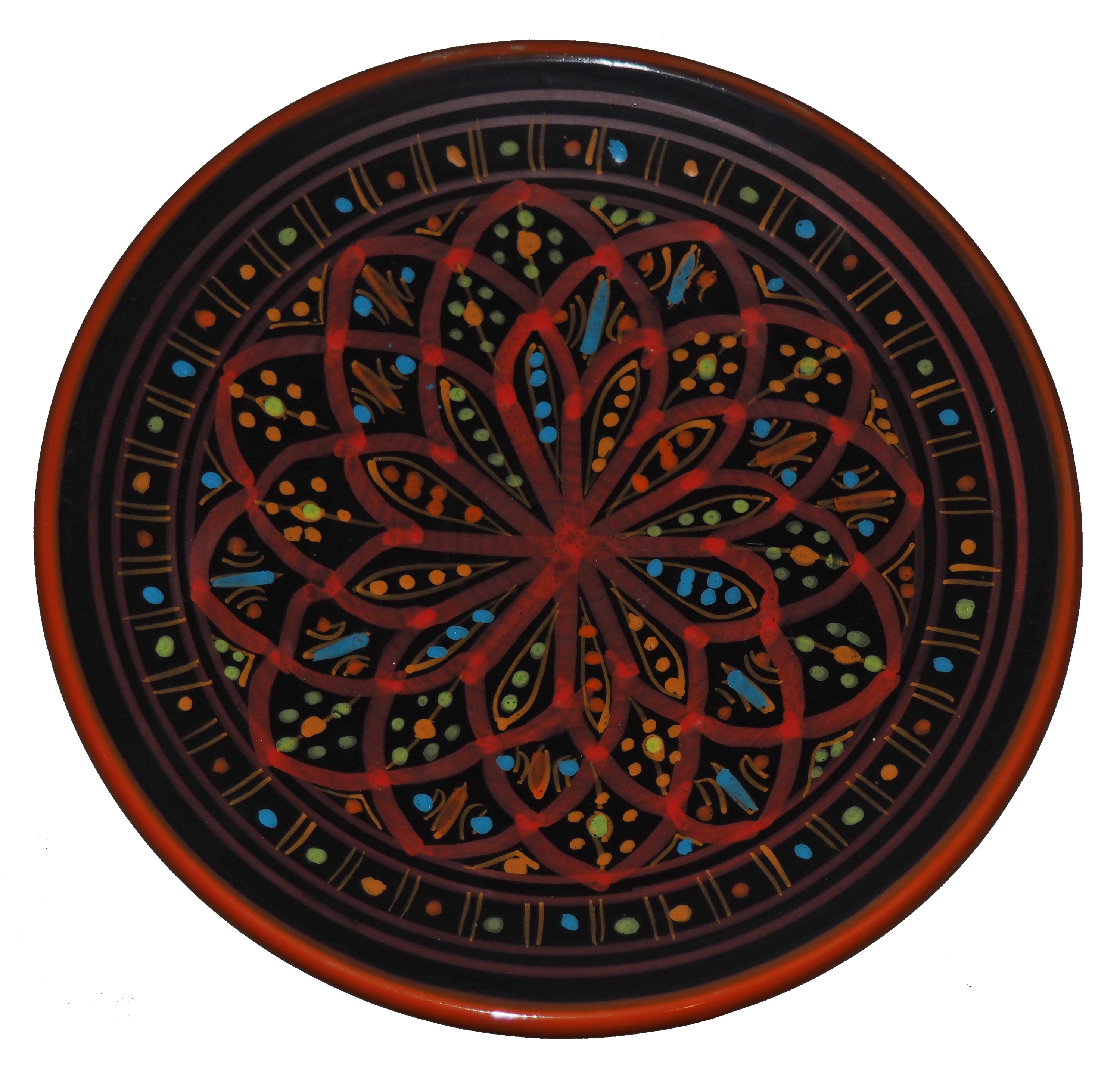 Ten orientalny talerz malowany jest w berberyjskie wzory. Przepiękna, niebanalna ozdoba Twojego stołu - ozdobny talerz prosto z Tunezji.
