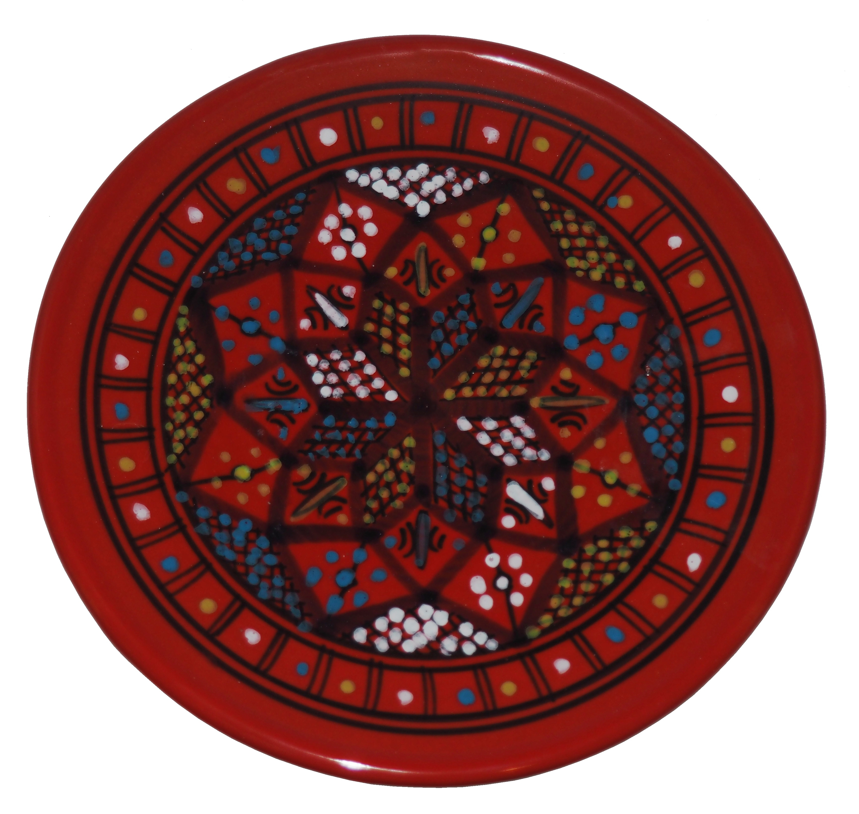 Ten orientalny talerz malowany jest w berberyjskie wzory. Przepiękna, niebanalna ozdoba Twojego stołu - ozdobny talerz prosto z Tunezji.