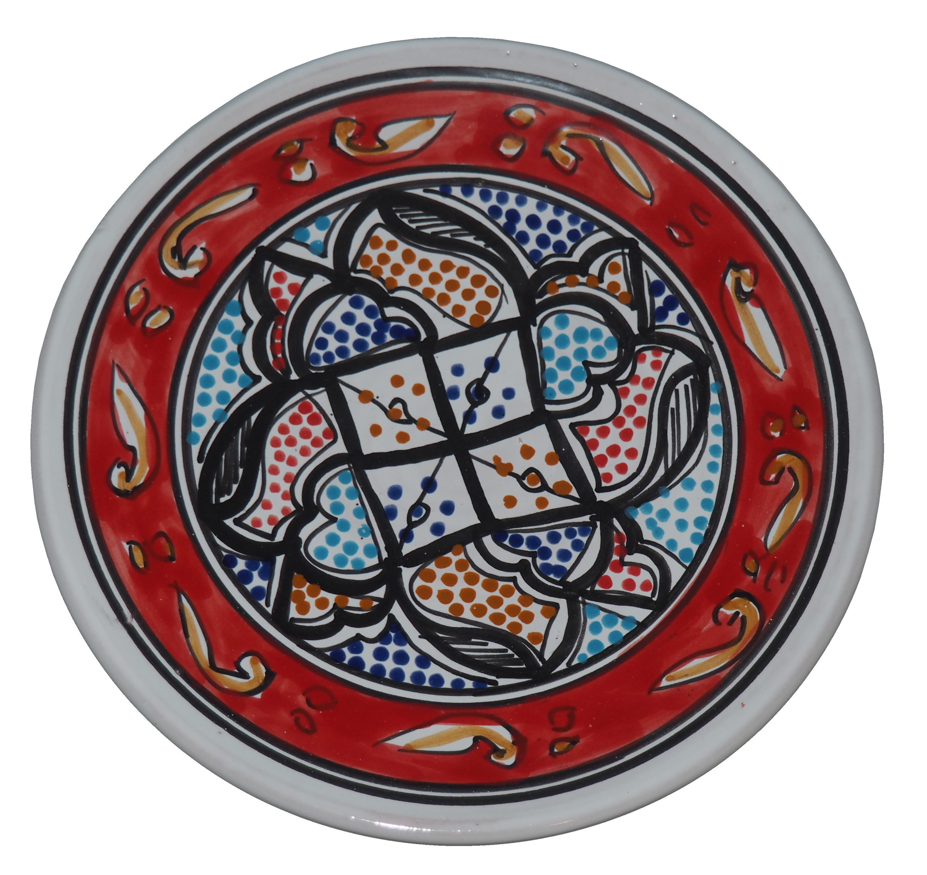 Ten orientalny talerz malowany jest w berberyjskie wzory. Przepiękna, niebanalna ozdoba Twojego stołu - ozdobny talerz prosto z Tunezji.