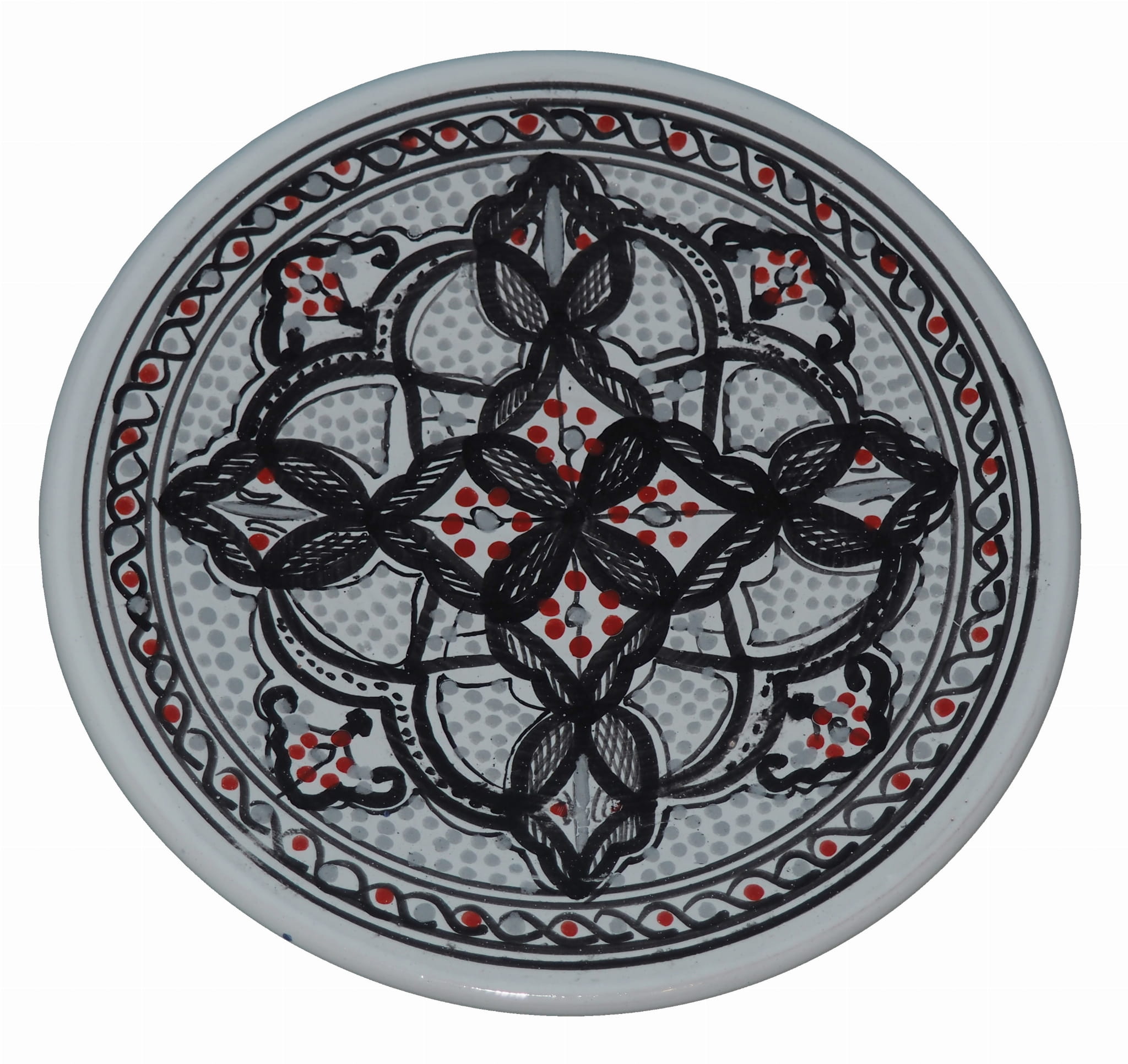 Ten orientalny talerz malowany jest w berberyjskie wzory. Przepiękna, niebanalna ozdoba Twojego stołu - ozdobny talerz prosto z Tunezji.