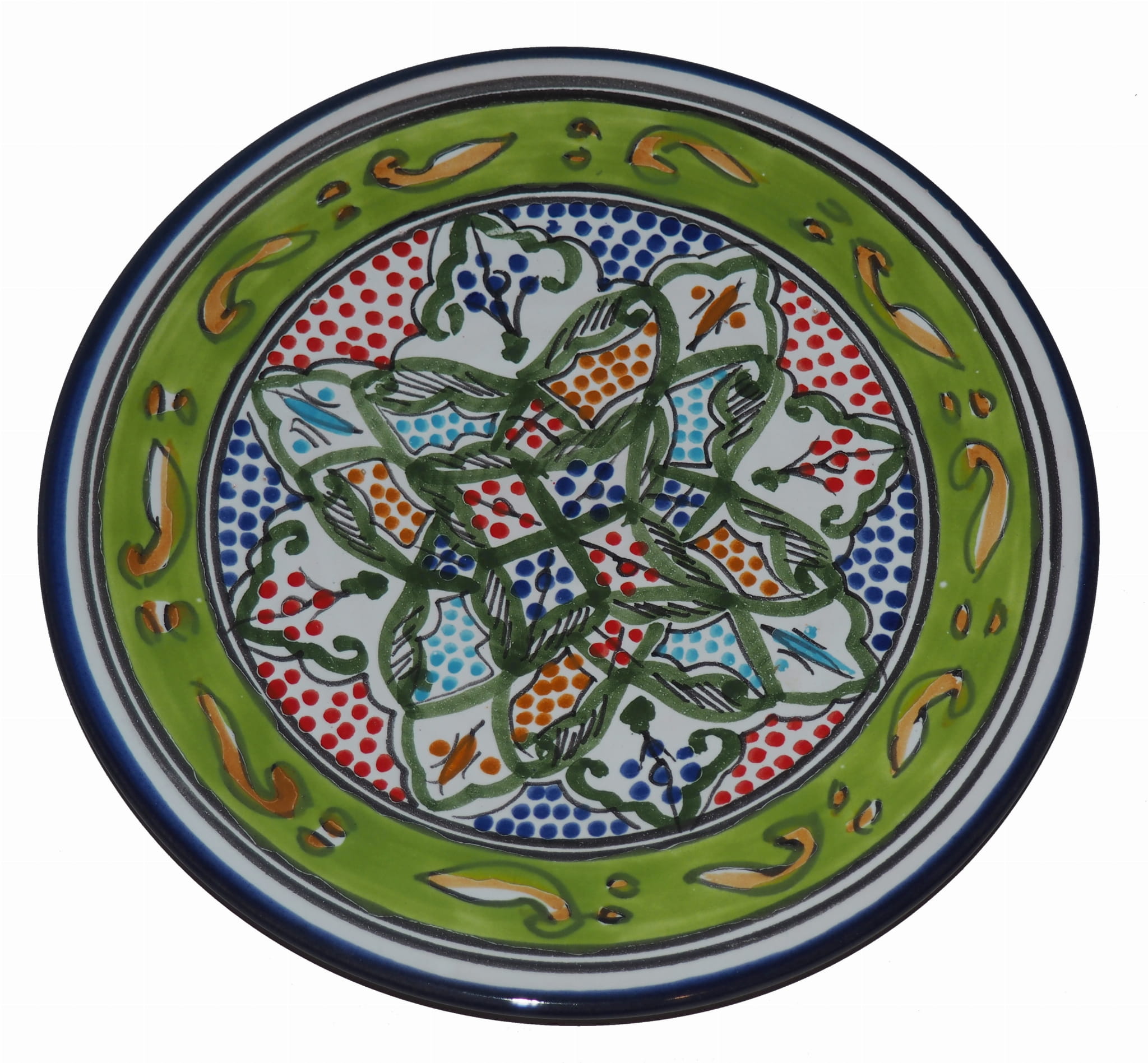 Ten orientalny talerz malowany jest w berberyjskie wzory. Przepiękna, niebanalna ozdoba Twojego stołu prosto z Tunezji.