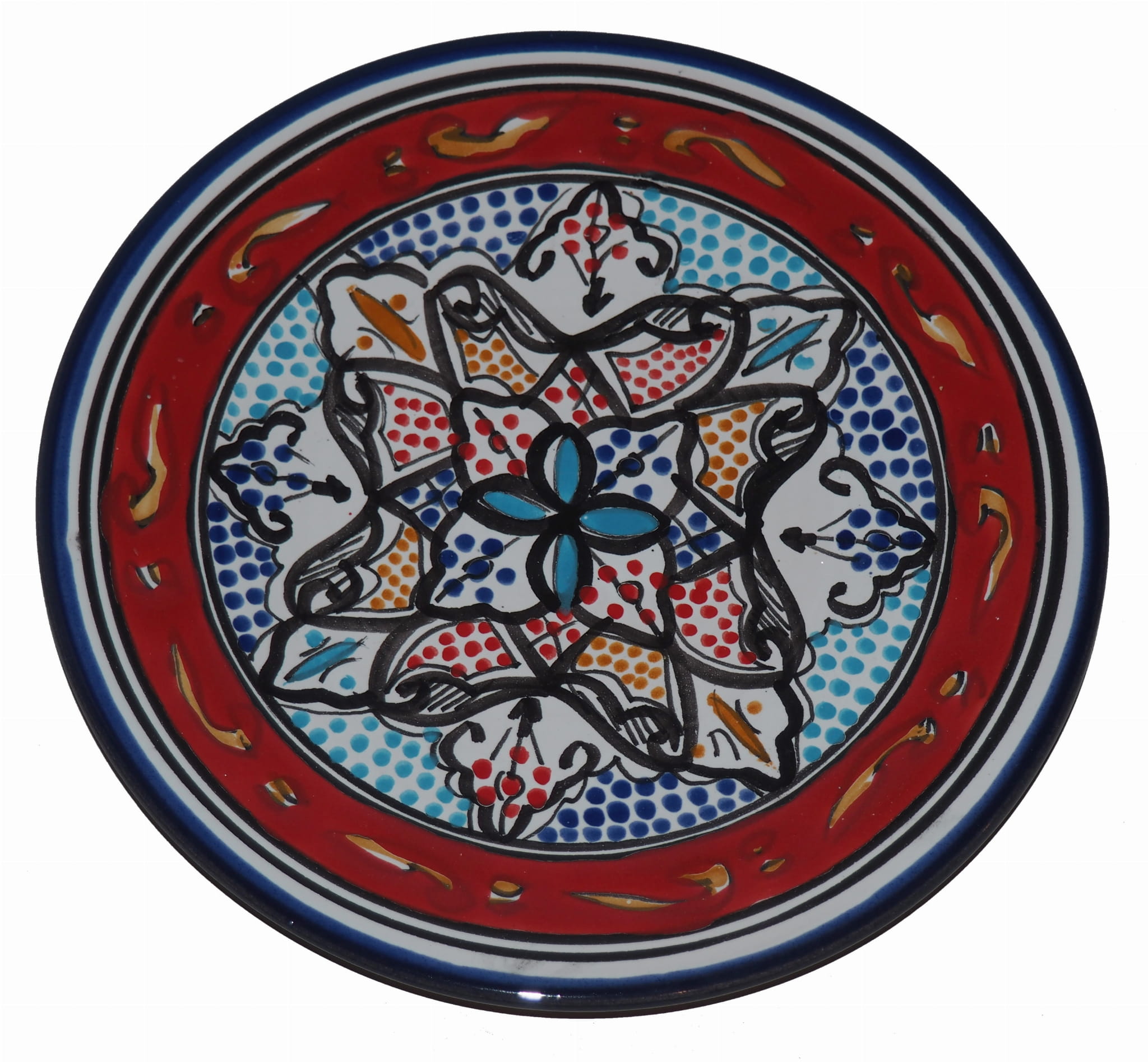 Ten orientalny talerz malowany jest w berberyjskie wzory. Przepiękna, niebanalna ozdoba Twojego stołu prosto z Tunezji.