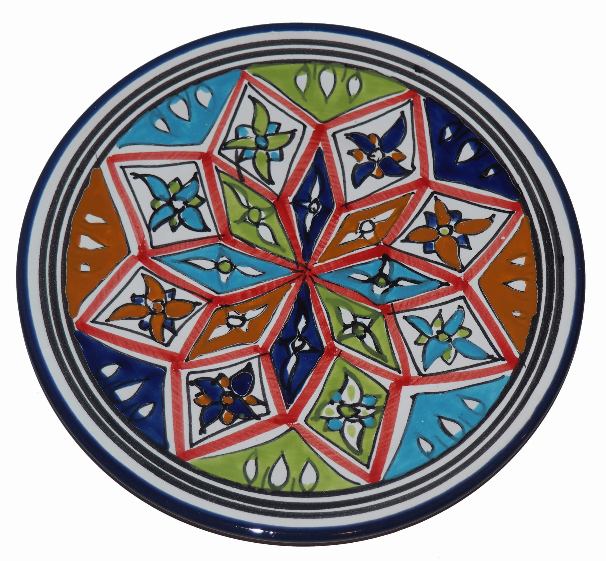 Ten orientalny talerz malowany jest w berberyjskie wzory. Przepiękna, niebanalna ozdoba Twojego stołu prosto z Tunezji.
