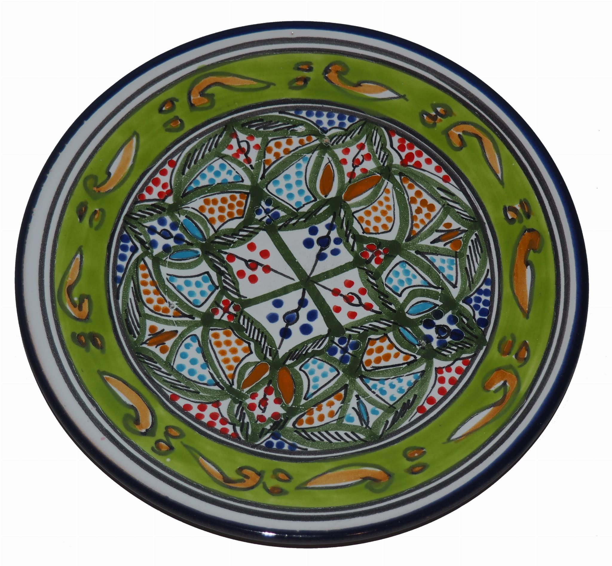 Ten orientalny talerz malowany jest w berberyjskie wzory. Przepiękna, niebanalna ozdoba Twojego stołu prosto z Tunezji.