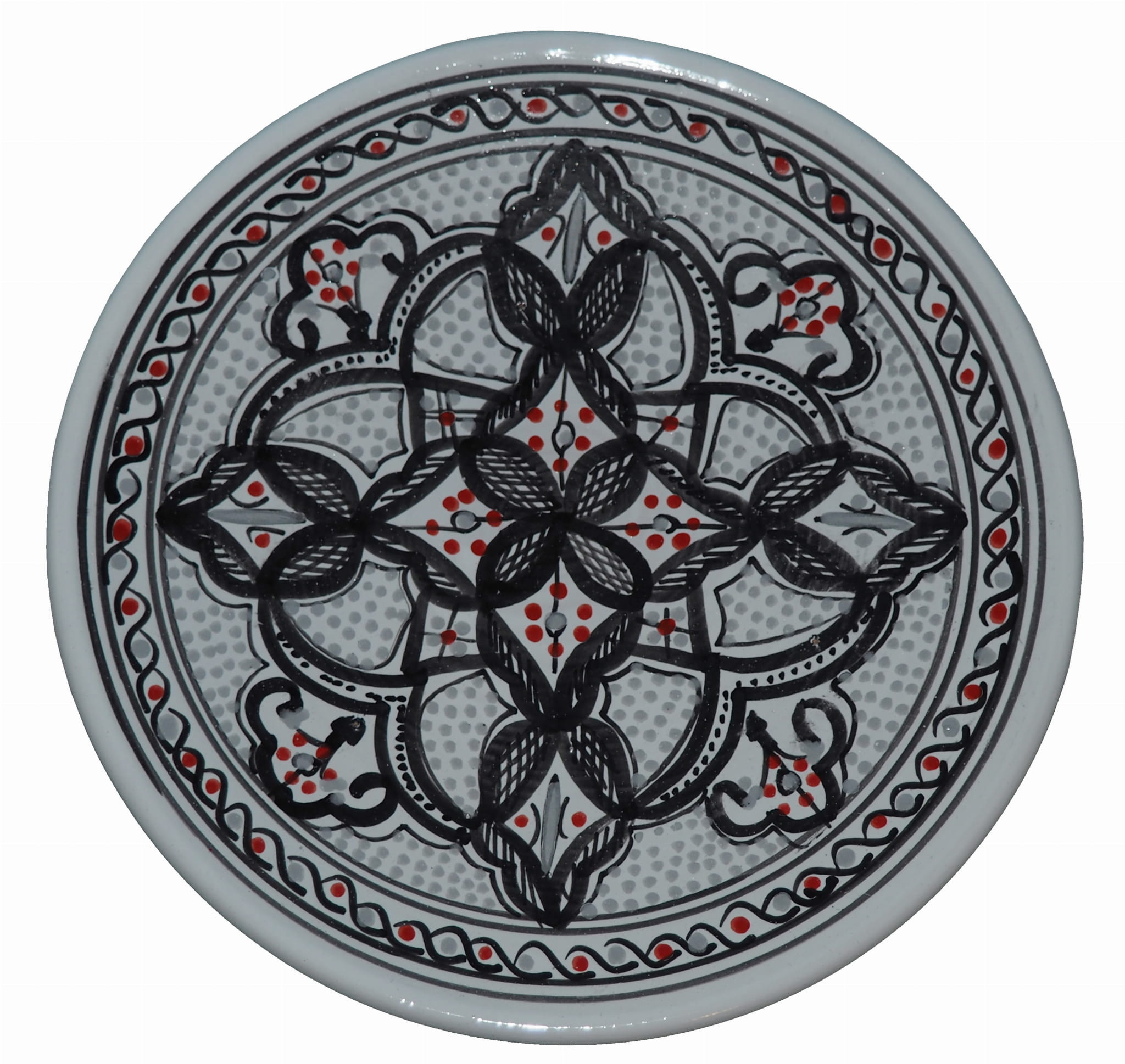 Ten orientalny talerz malowany jest w berberyjskie wzory. Przepiękna, niebanalna ozdoba Twojego stołu prosto z Tunezji.