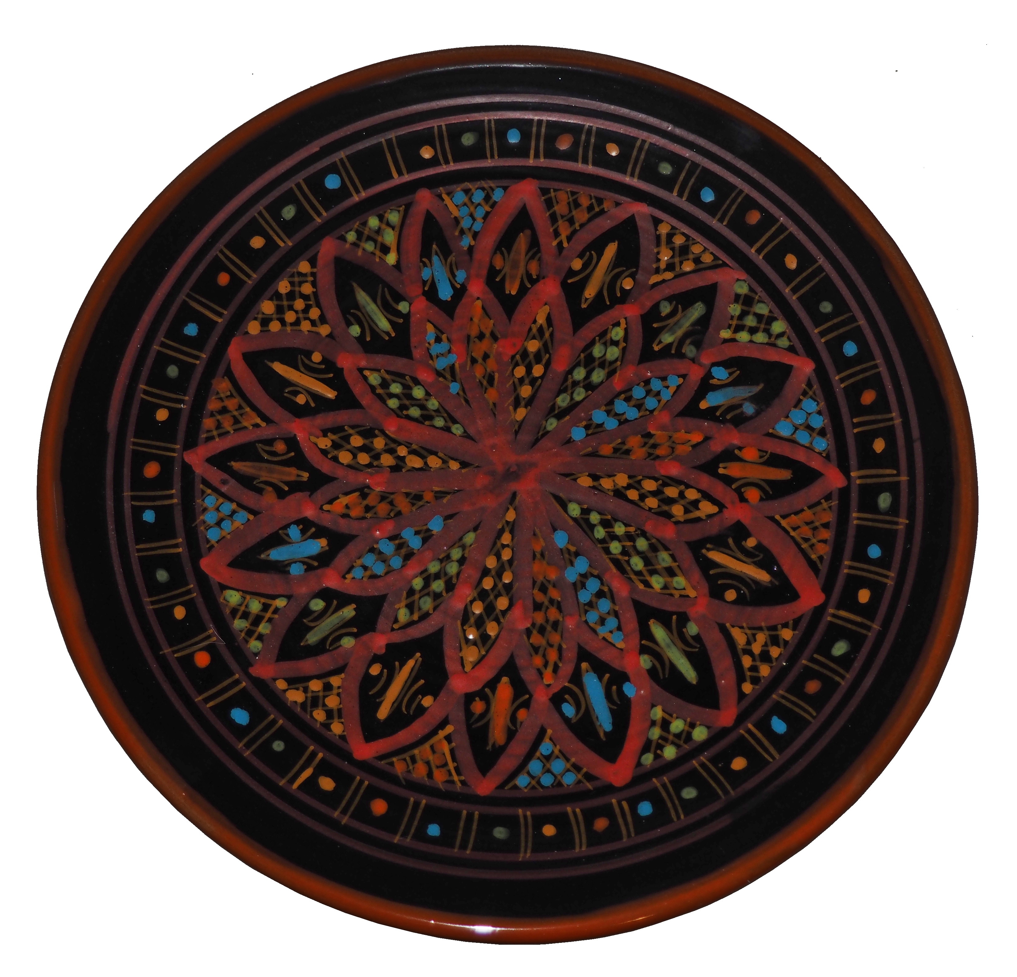 Ten orientalny talerz malowany jest w berberyjskie wzory. Przepiękna, niebanalna ozdoba Twojego stołu prosto z Tunezji.