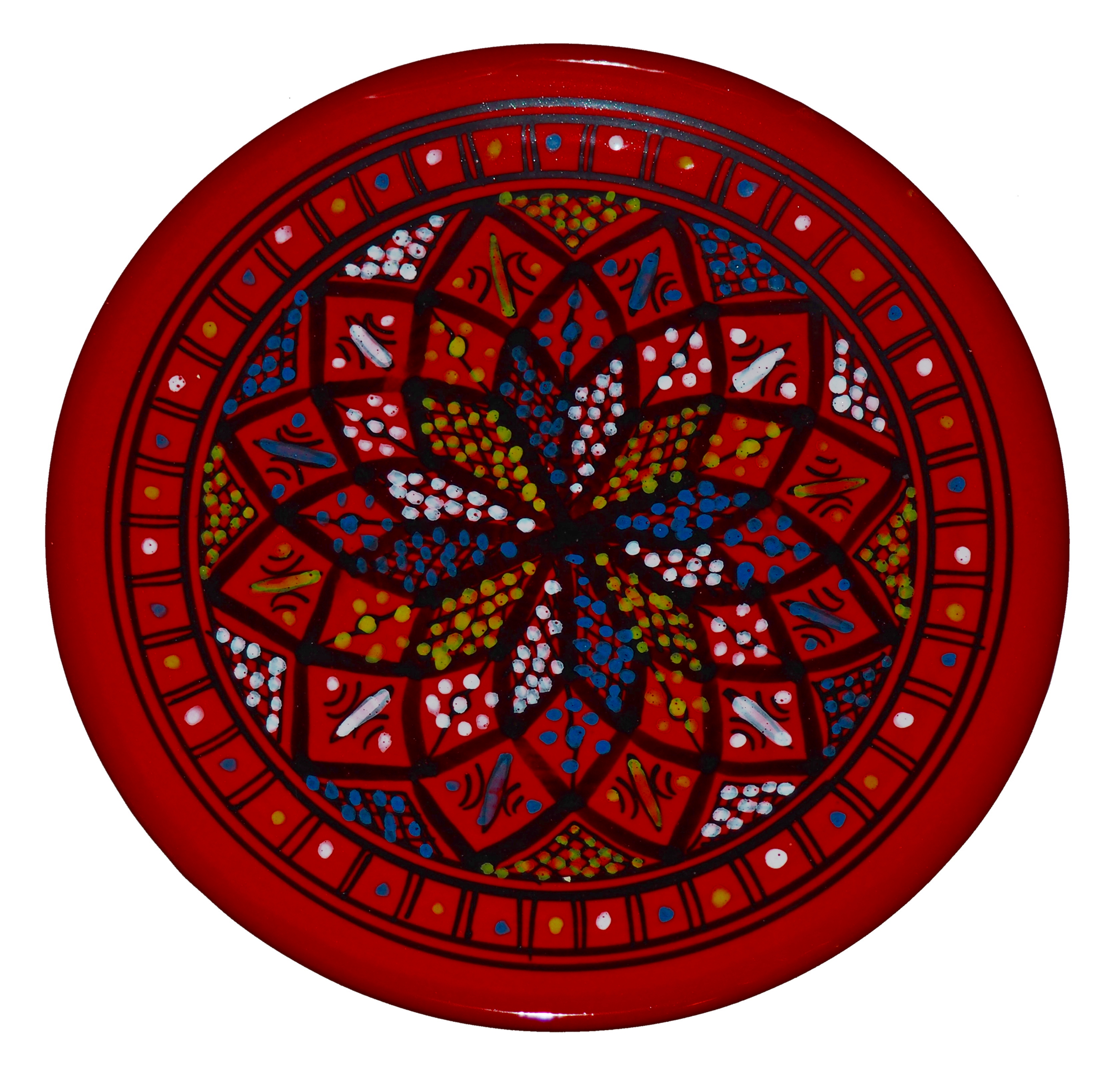 Ten orientalny talerz malowany jest w berberyjskie wzory. Przepiękna, niebanalna ozdoba Twojego stołu prosto z Tunezji.