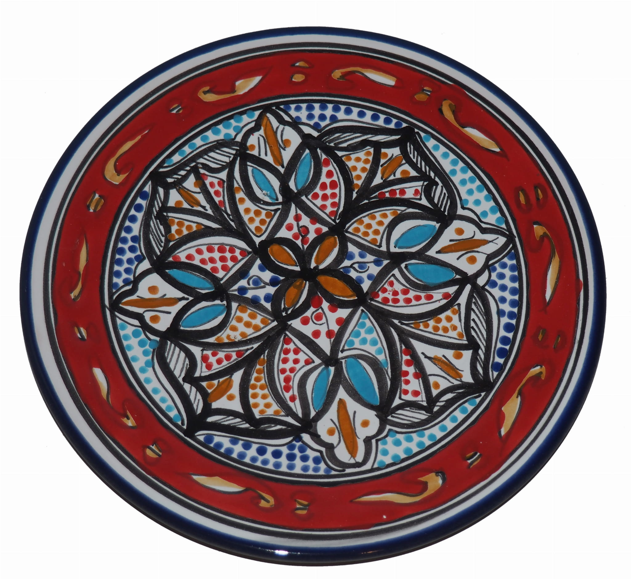 Ten orientalny talerz malowany jest w berberyjskie wzory. Przepiękna, niebanalna ozdoba Twojego stołu prosto z Tunezji.