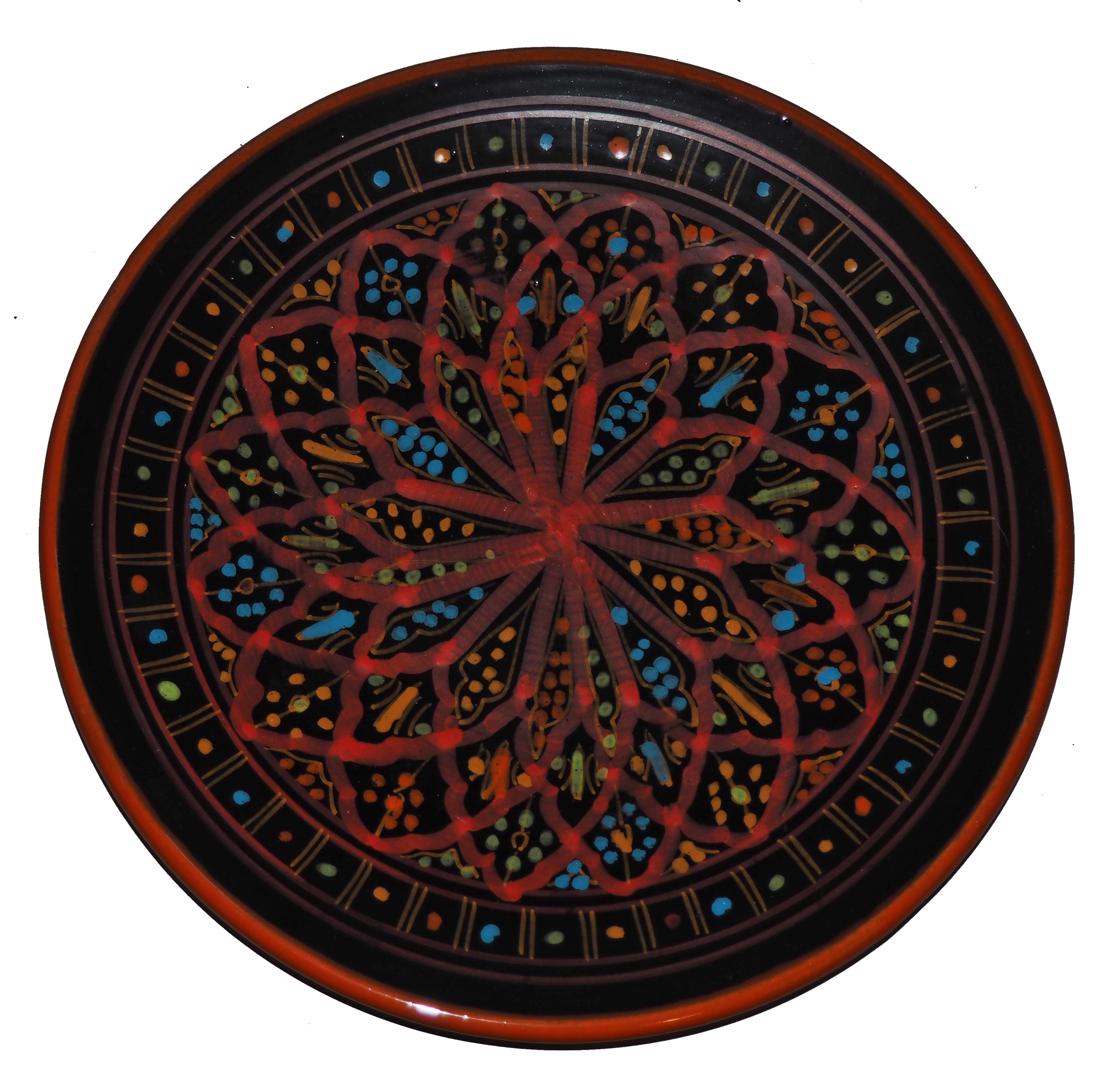 Ten orientalny talerz malowany jest w berberyjskie wzory. Przepiękna, niebanalna ozdoba Twojego stołu prosto z Tunezji.