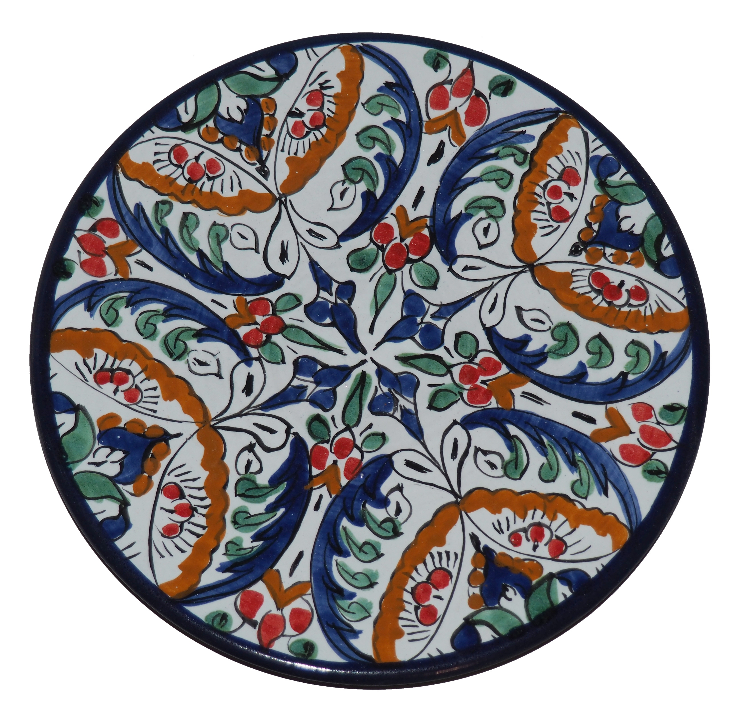 Ten orientalny talerz malowany jest w berberyjskie wzory. Przepiękna, niebanalna ozdoba Twojego stołu prosto z Tunezji.