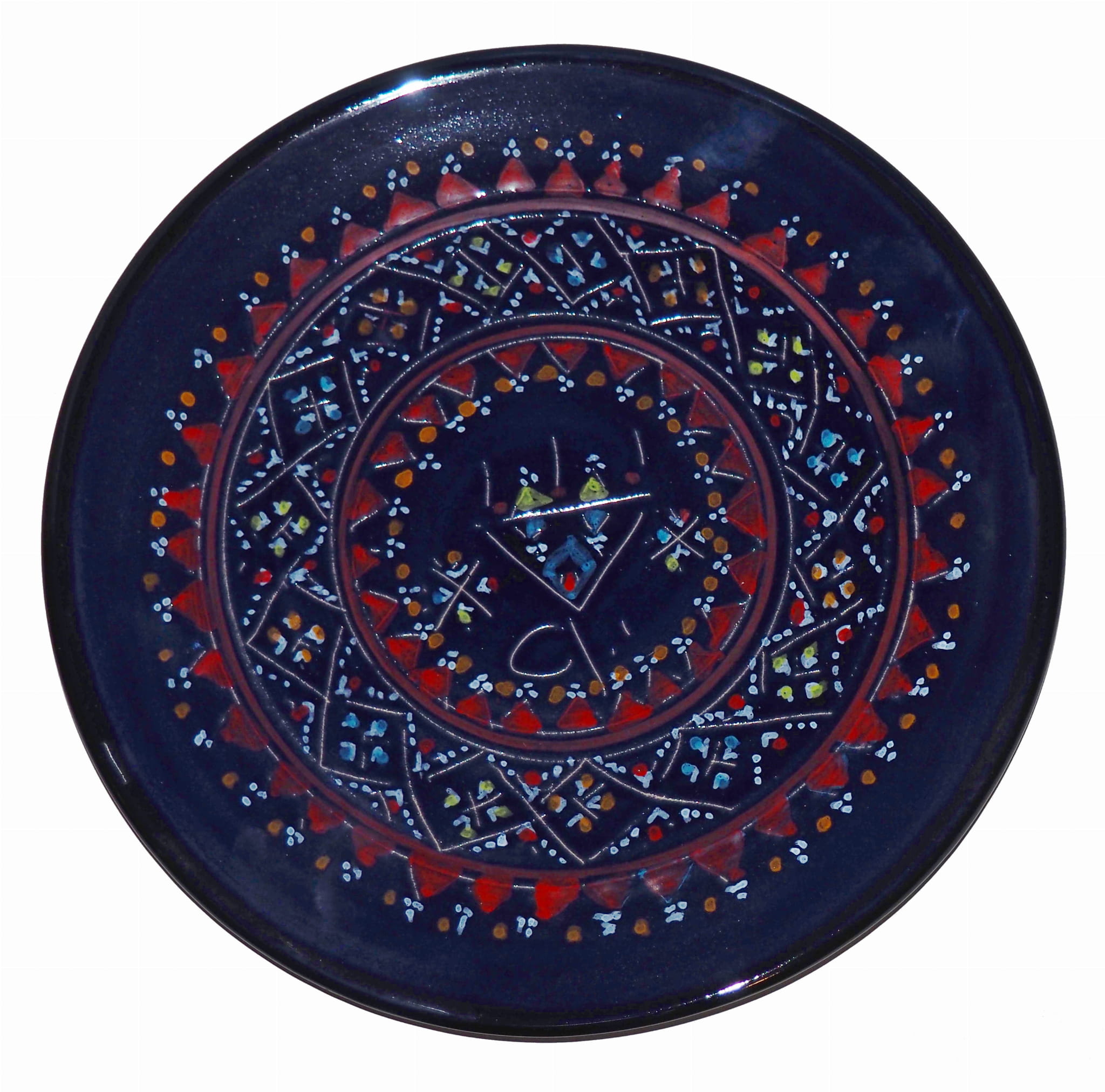 Ten orientalny talerz malowany jest w berberyjskie wzory. Przepiękna, niebanalna ozdoba Twojego stołu prosto z Tunezji.