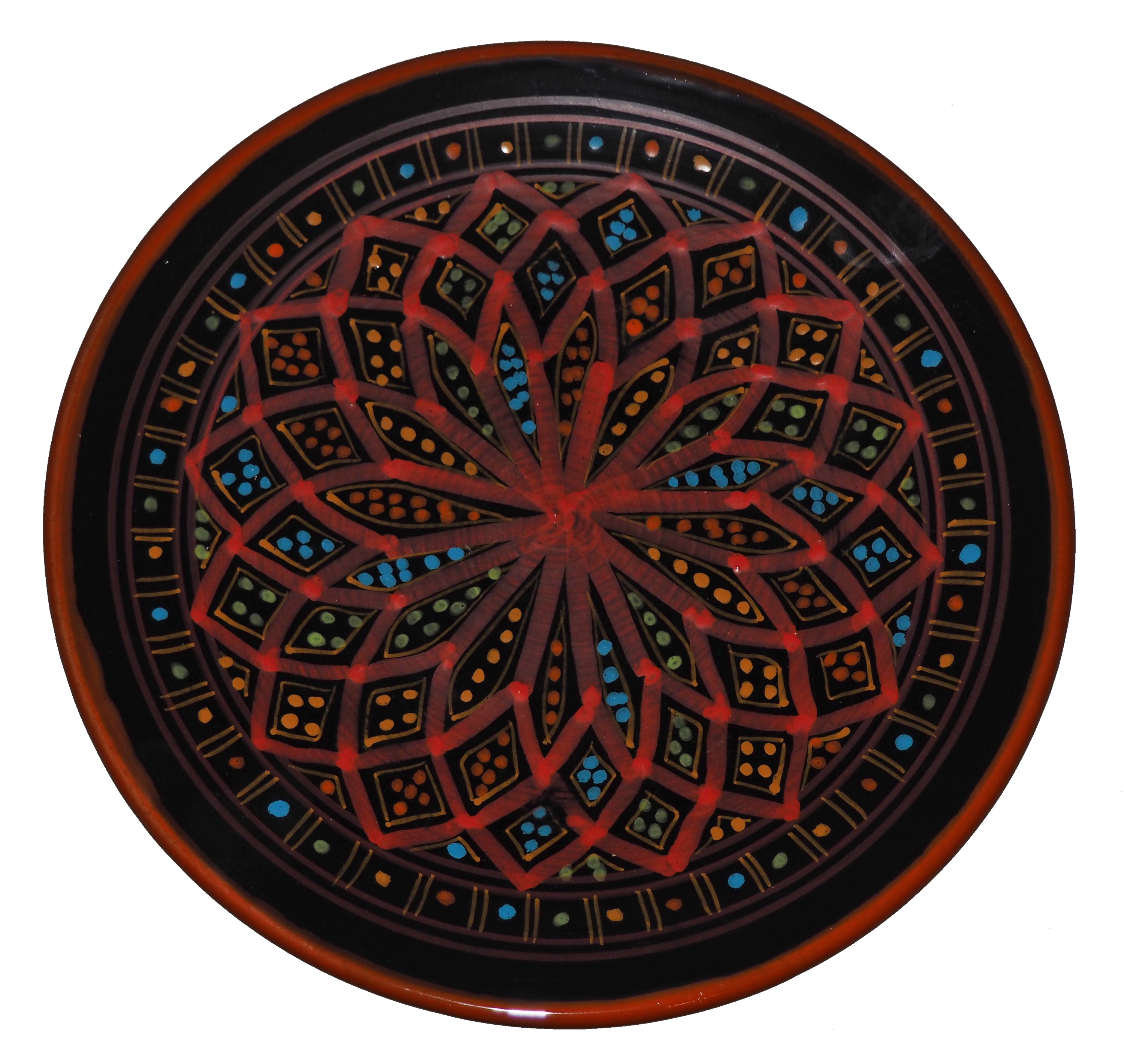 Ten orientalny talerz malowany jest w berberyjskie wzory. Przepiękna, niebanalna ozdoba Twojego stołu prosto z Tunezji.