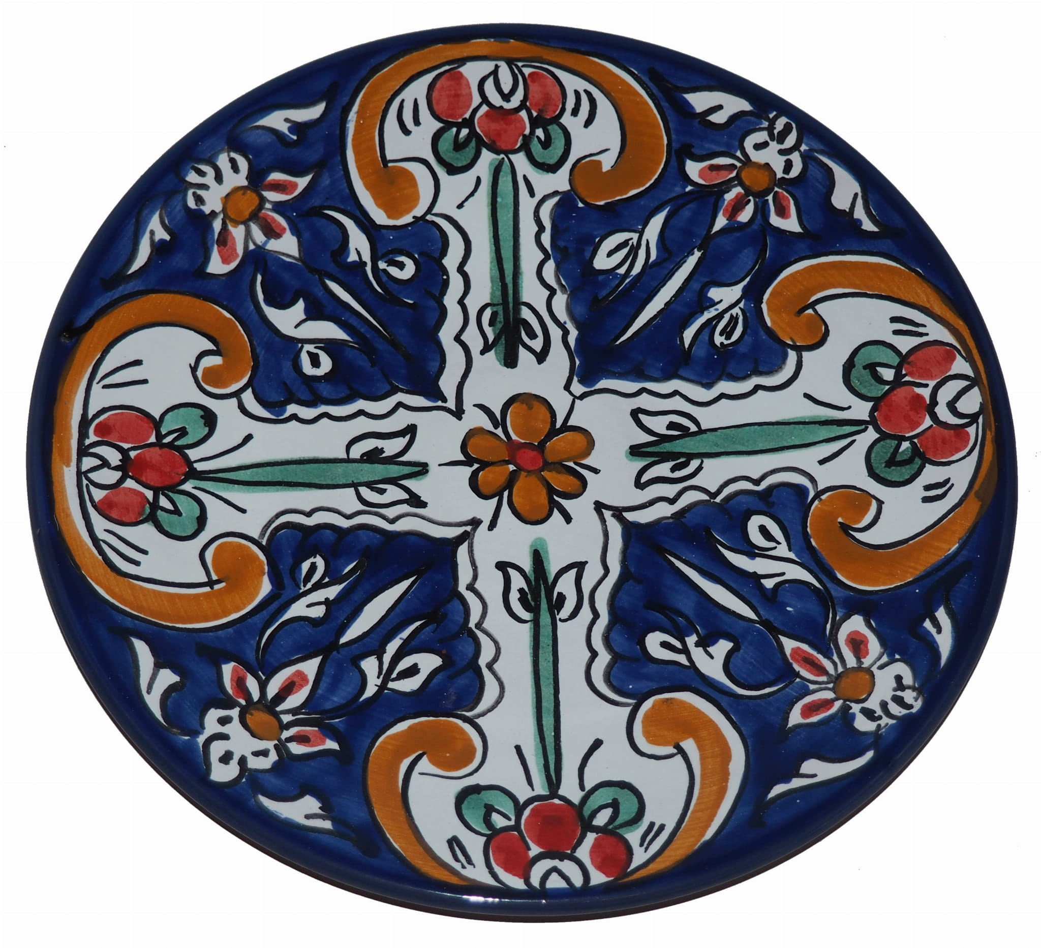 Ten orientalny talerz malowany jest w berberyjskie wzory. Przepiękna, niebanalna ozdoba Twojego stołu prosto z Tunezji.
