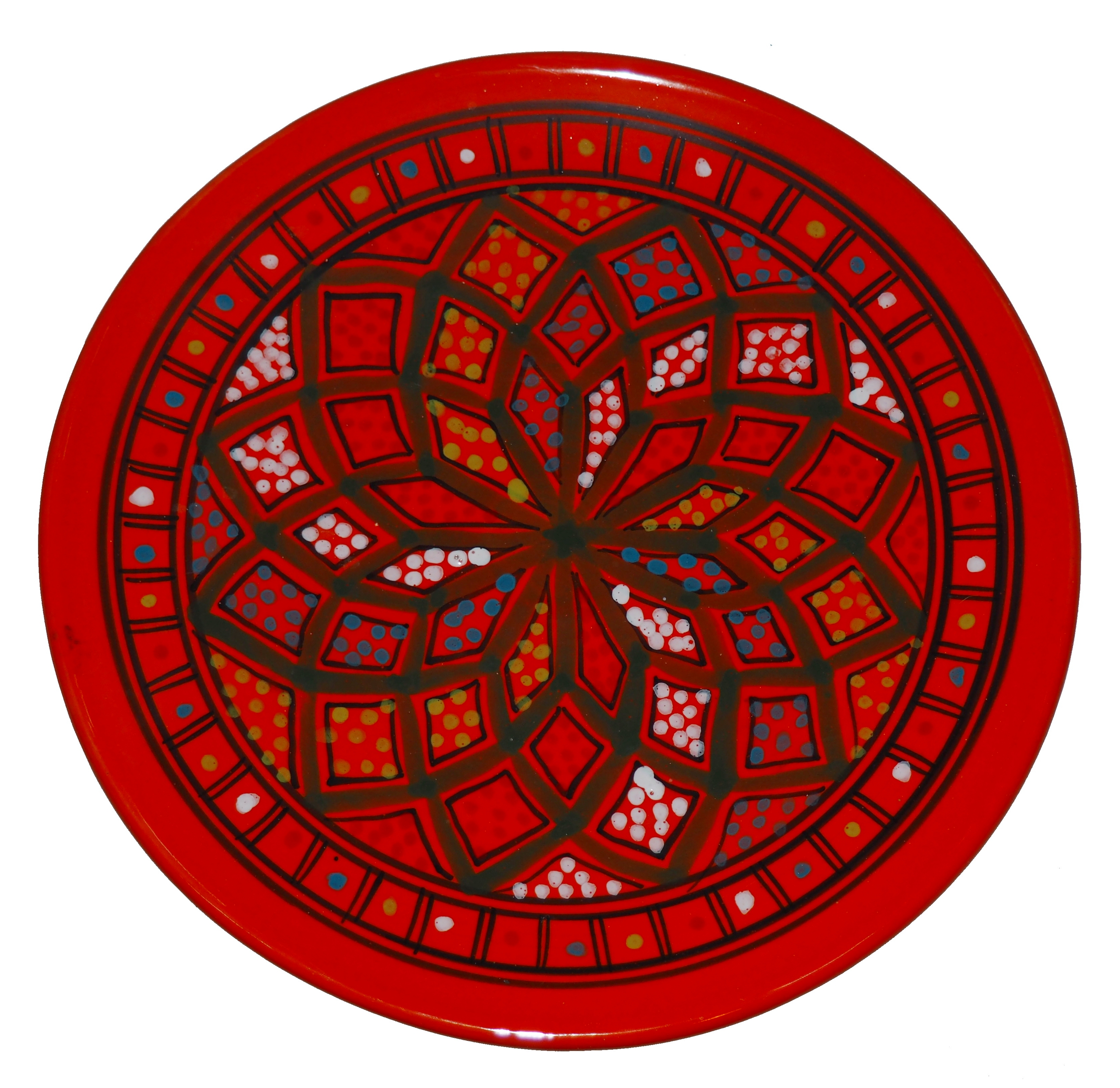 Ten orientalny talerz malowany jest w berberyjskie wzory. Przepiękna, niebanalna ozdoba Twojego stołu prosto z Tunezji.