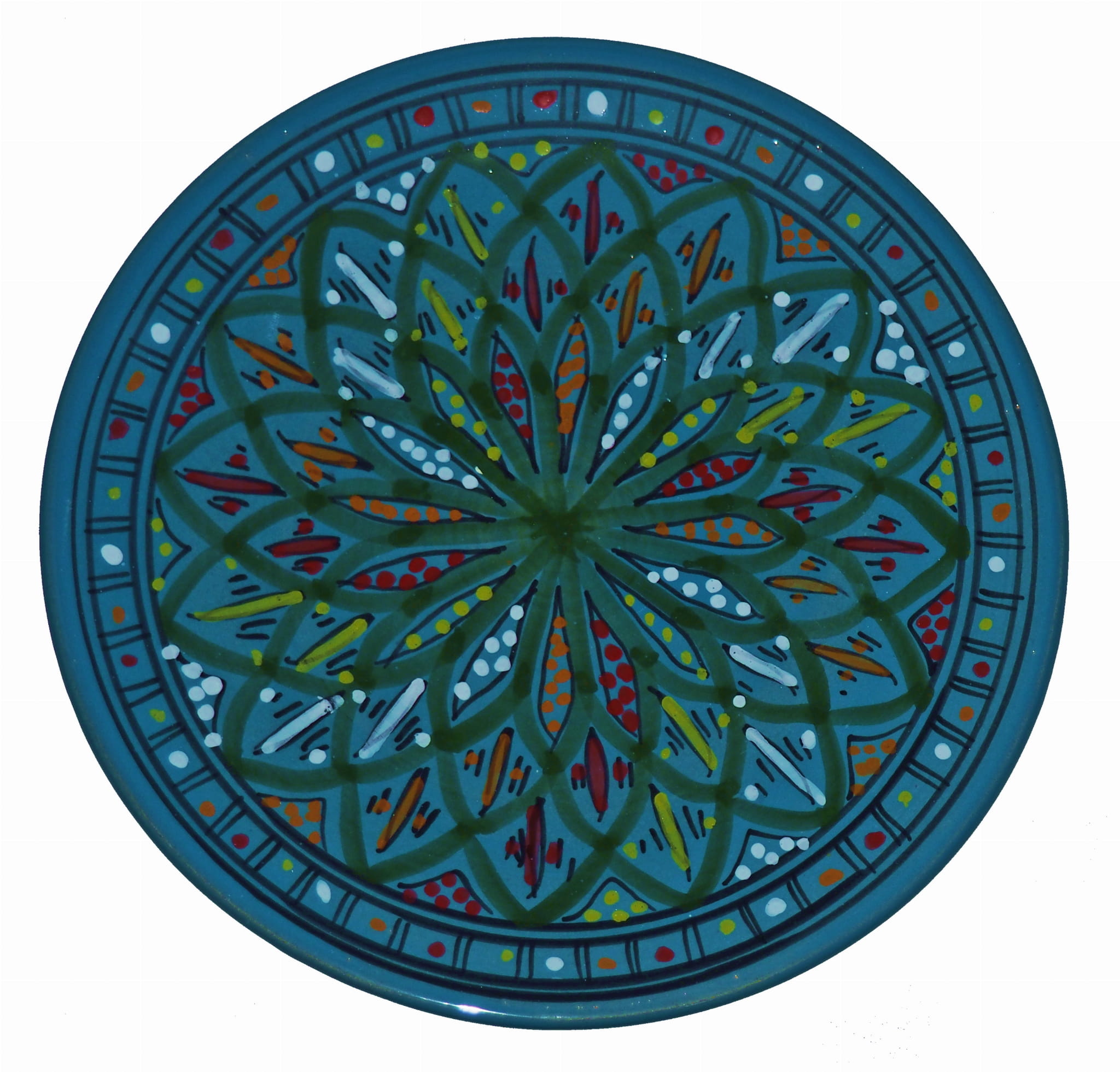 Ten orientalny talerz malowany jest w berberyjskie wzory. Przepiękna, niebanalna ozdoba Twojego stołu prosto z Tunezji.