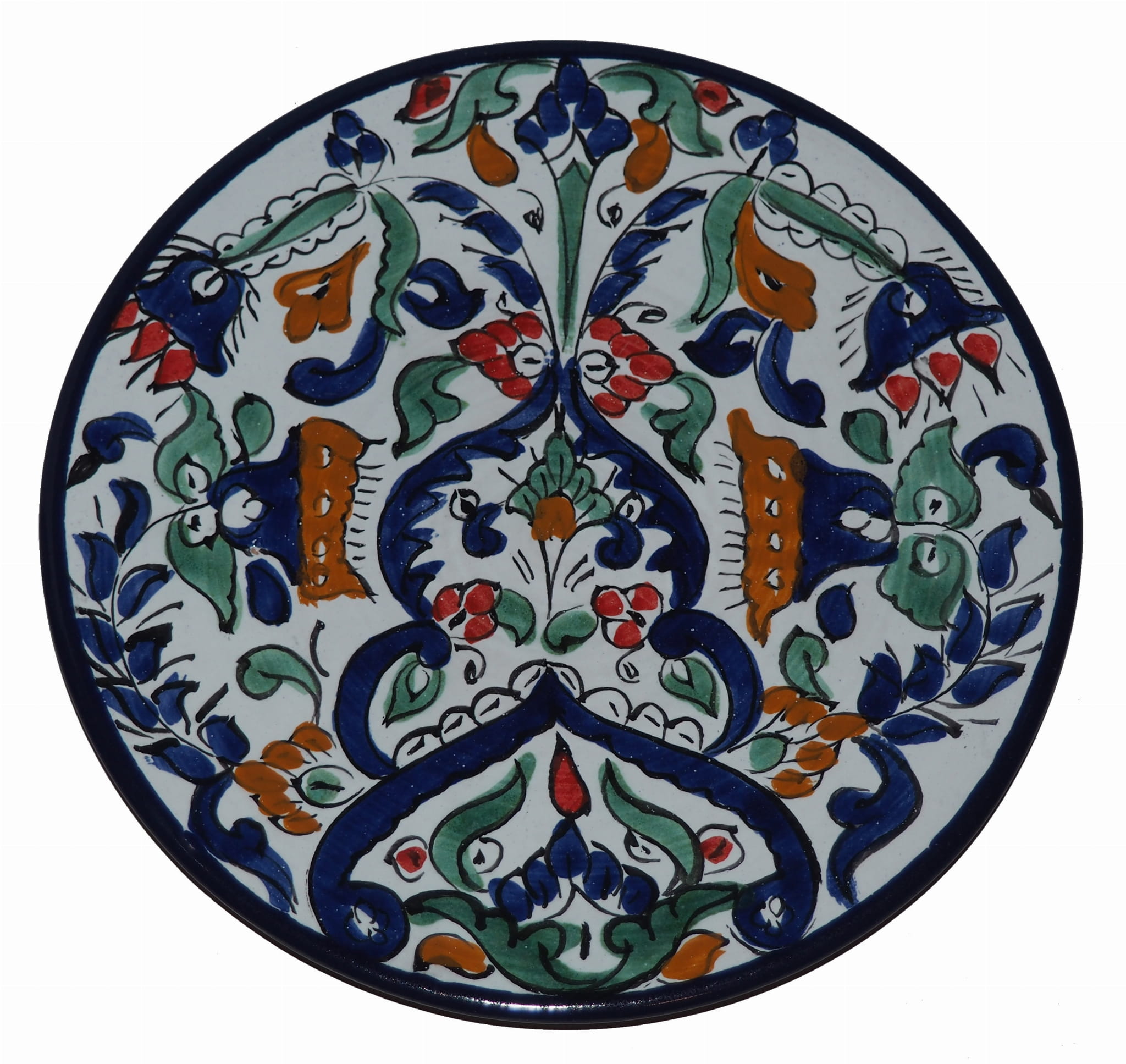 Ten orientalny talerz malowany jest w berberyjskie wzory. Przepiękna, niebanalna ozdoba Twojego stołu prosto z Tunezji.