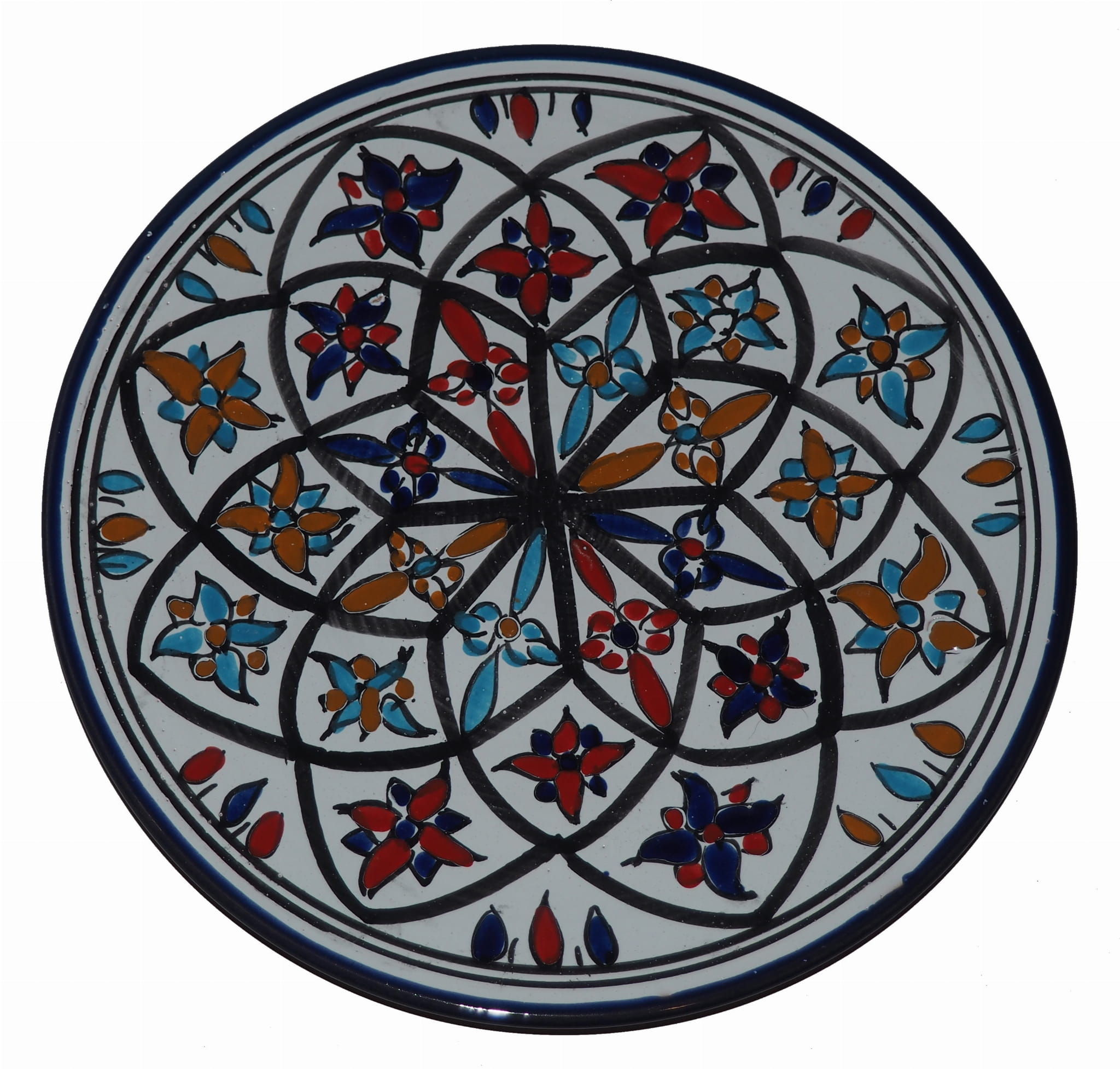 Ten orientalny talerz malowany jest w berberyjskie wzory. Przepiękna, niebanalna ozdoba Twojego stołu prosto z Tunezji.