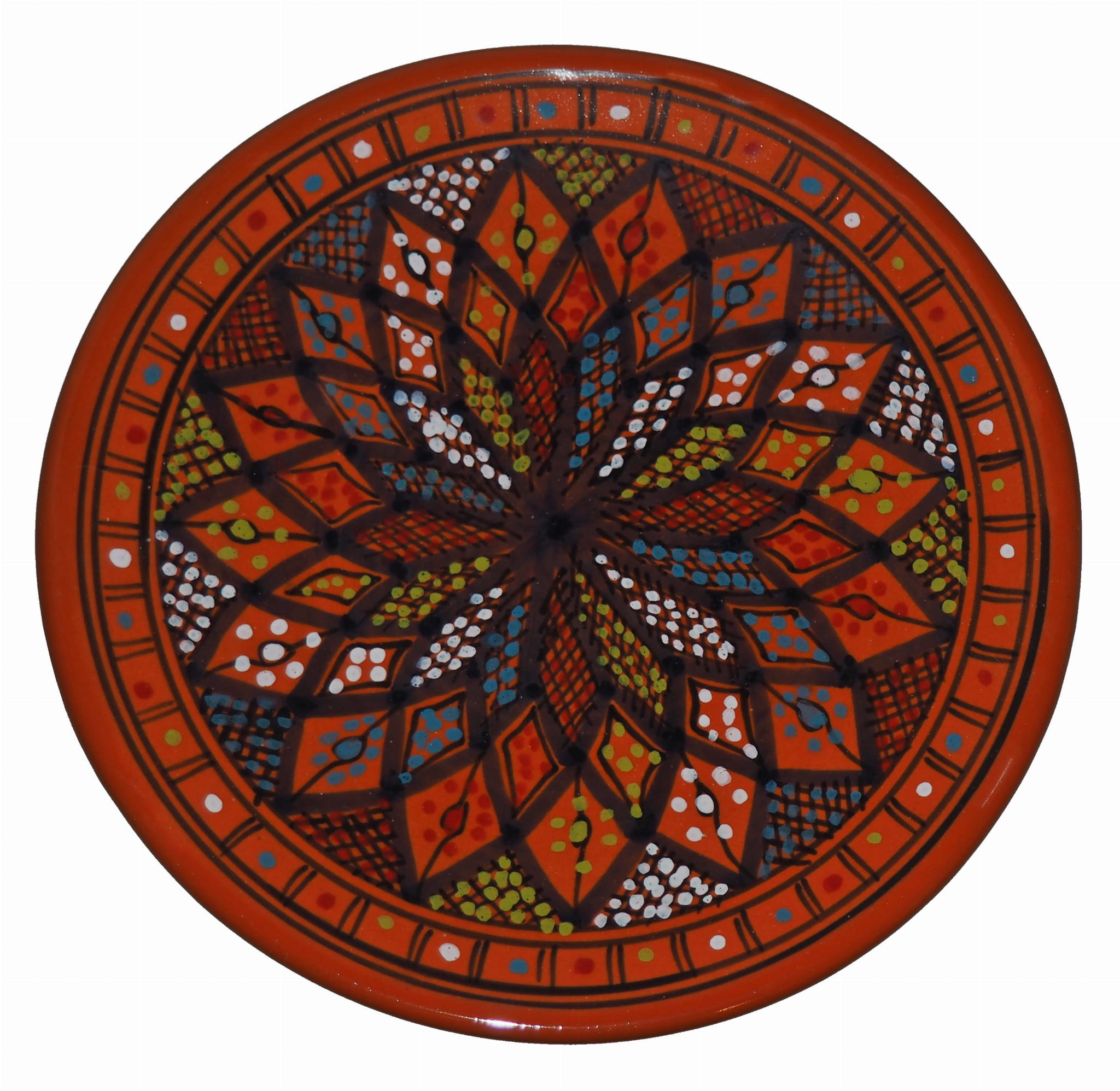 Ten orientalny talerz malowany jest w berberyjskie wzory. Przepiękna, niebanalna ozdoba Twojego stołu prosto z Tunezji.