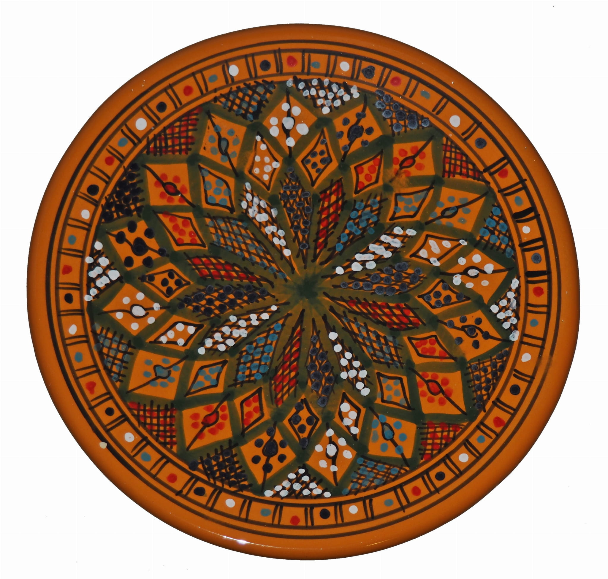 Ten orientalny talerz malowany jest w berberyjskie wzory. Przepiękna, niebanalna ozdoba Twojego stołu prosto z Tunezji.