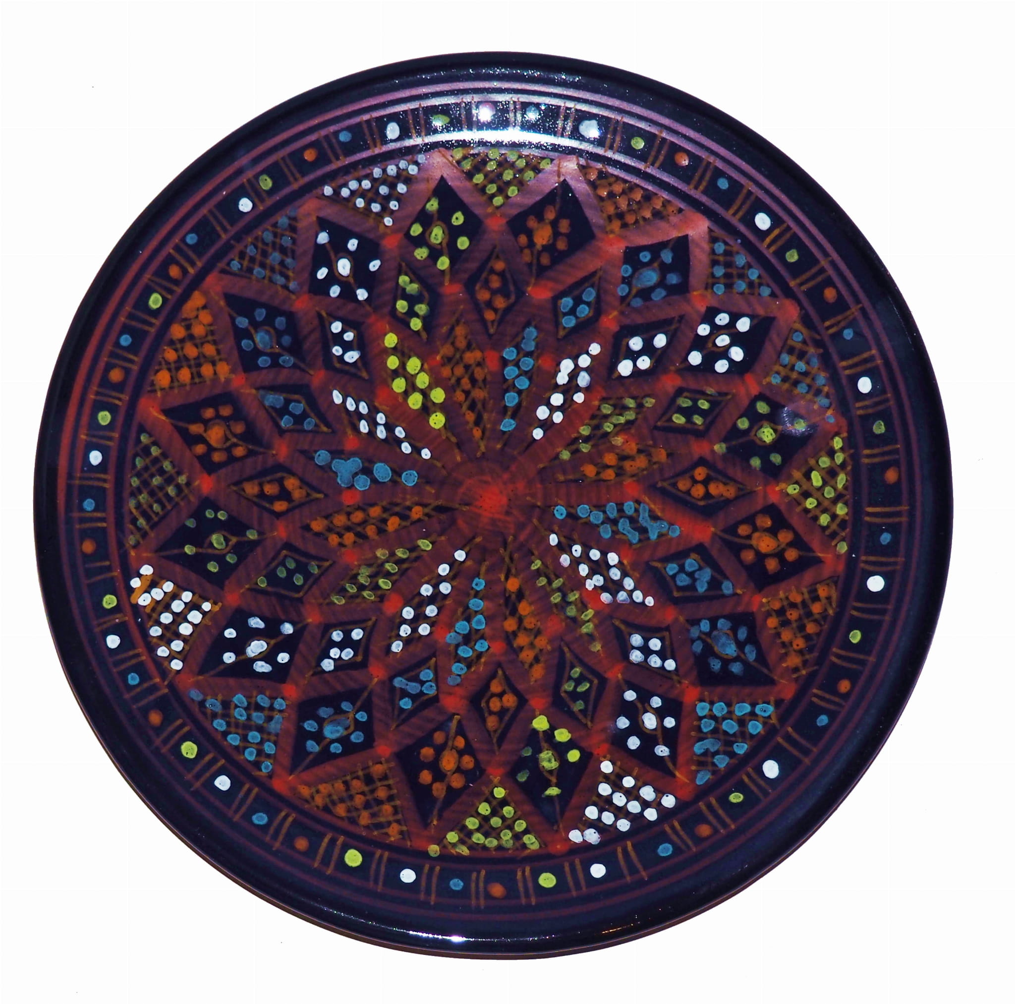 Ten orientalny talerz malowany jest w berberyjskie wzory. Przepiękna, niebanalna ozdoba Twojego stołu prosto z Tunezji.