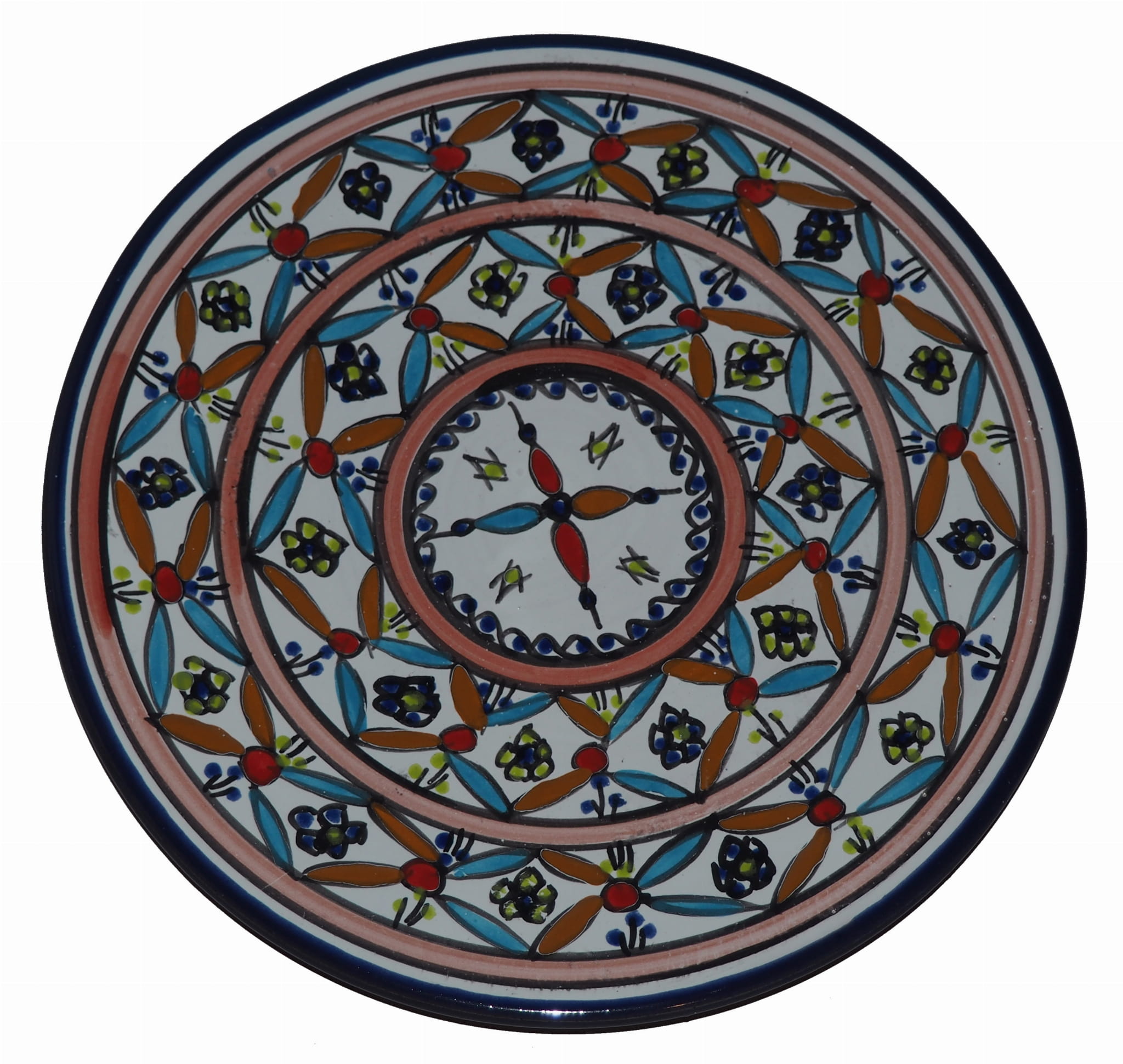 Ten orientalny talerz malowany jest w berberyjskie wzory. Przepiękna, niebanalna ozdoba Twojego stołu prosto z Tunezji.