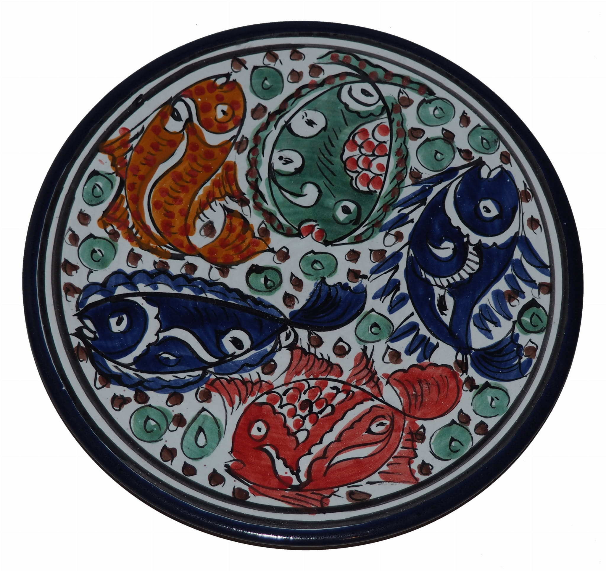 Ten orientalny talerz malowany jest w berberyjskie wzory. Przepiękna, niebanalna ozdoba Twojego stołu prosto z Tunezji.