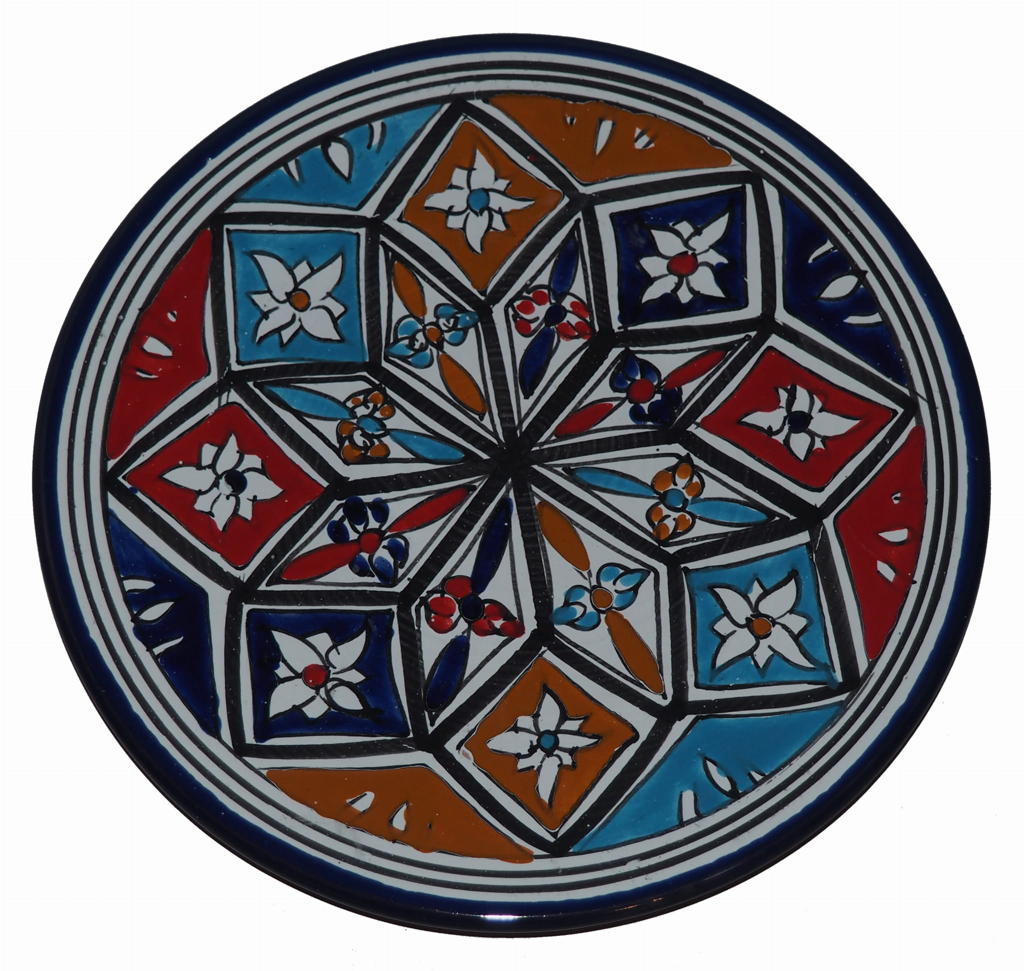 Ten orientalny talerz malowany jest w berberyjskie wzory. Przepiękna, niebanalna ozdoba Twojego stołu prosto z Tunezji.
