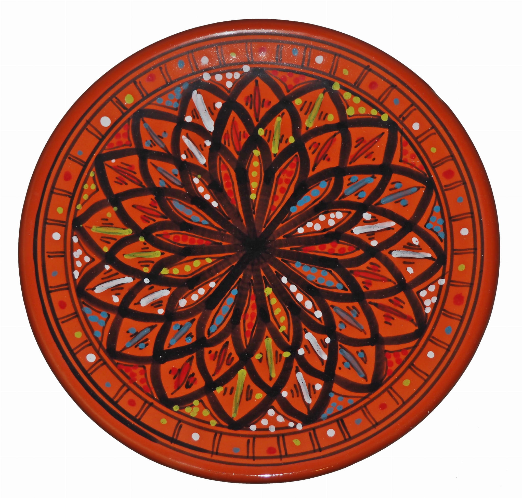 Ten orientalny talerz malowany jest w berberyjskie wzory. Przepiękna, niebanalna ozdoba Twojego stołu prosto z Tunezji.