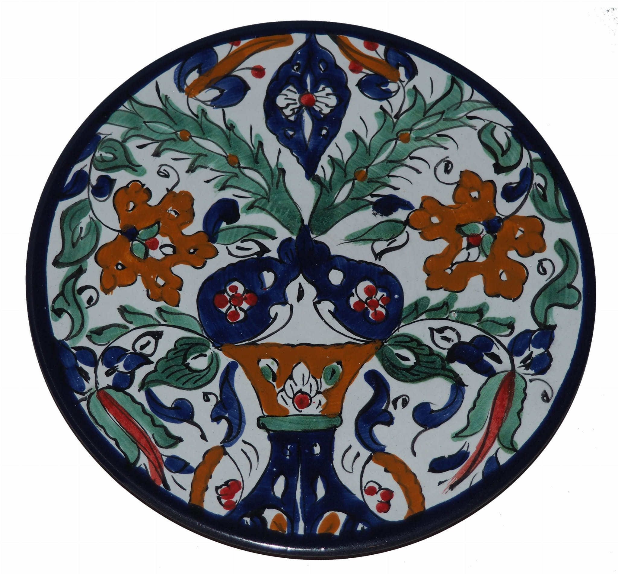 Ten orientalny talerz malowany jest w berberyjskie wzory. Przepiękna, niebanalna ozdoba Twojego stołu prosto z Tunezji.