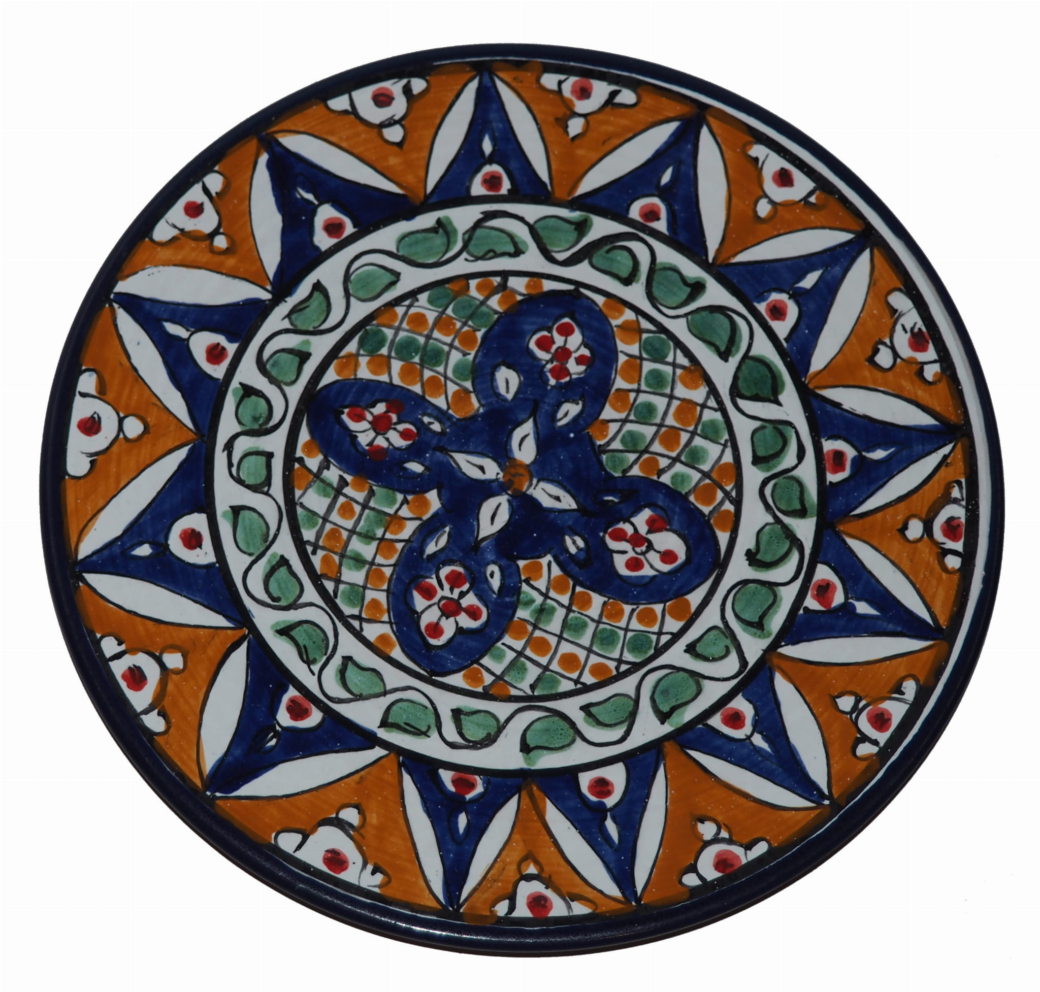 Ten orientalny talerz malowany jest w berberyjskie wzory. Przepiękna, niebanalna ozdoba Twojego stołu prosto z Tunezji.