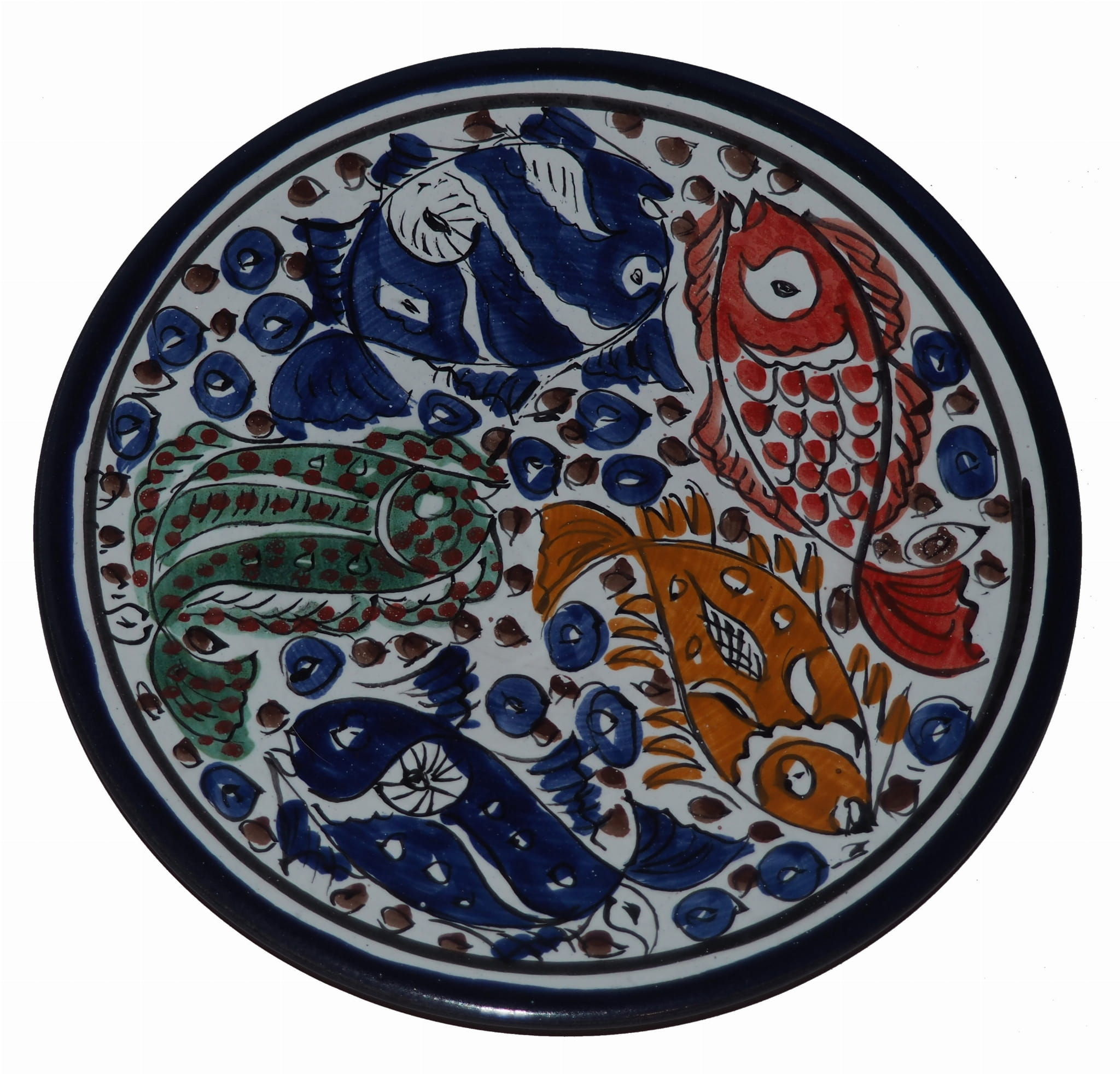 Ten orientalny talerz malowany jest w berberyjskie wzory. Przepiękna, niebanalna ozdoba Twojego stołu prosto z Tunezji.