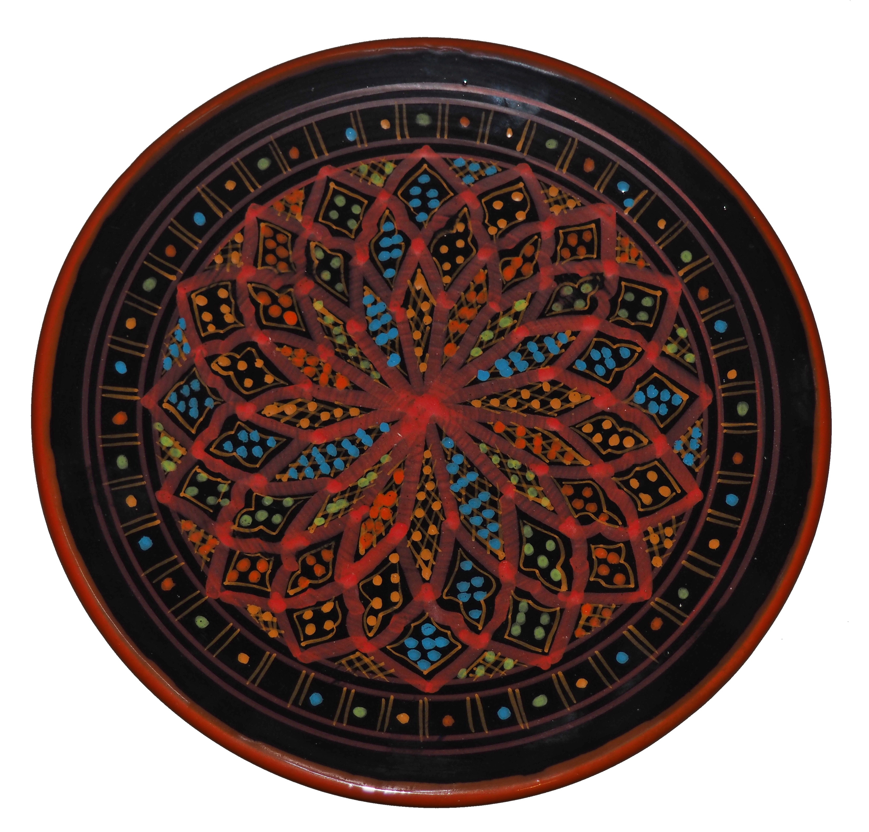 Ten orientalny talerz malowany jest w berberyjskie wzory. Przepiękna, niebanalna ozdoba Twojego stołu prosto z Tunezji.