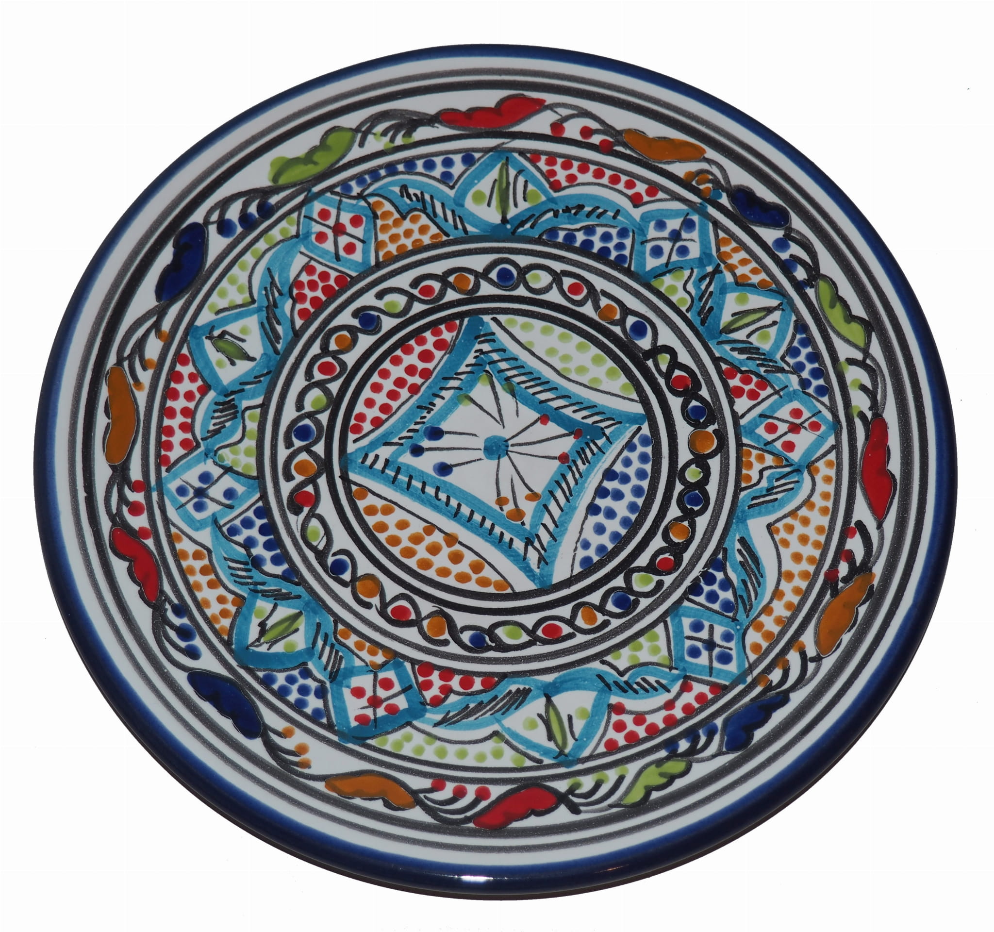 Ten orientalny talerz malowany jest w berberyjskie wzory. Przepiękna, niebanalna ozdoba Twojego stołu prosto z Tunezji.