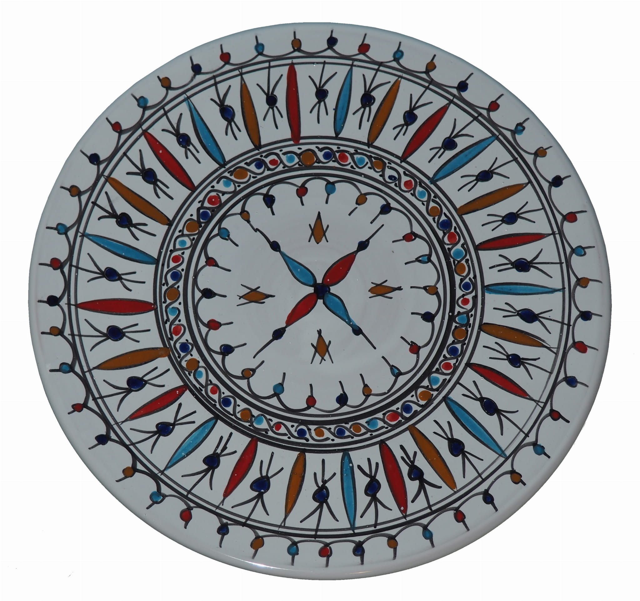 Orientalny talerz malowany jest w berberyjskie wzory. Przepiękna, niebanalna ozdoba Twojego stołu - ozdobna ceramika prosto z Tunezji.