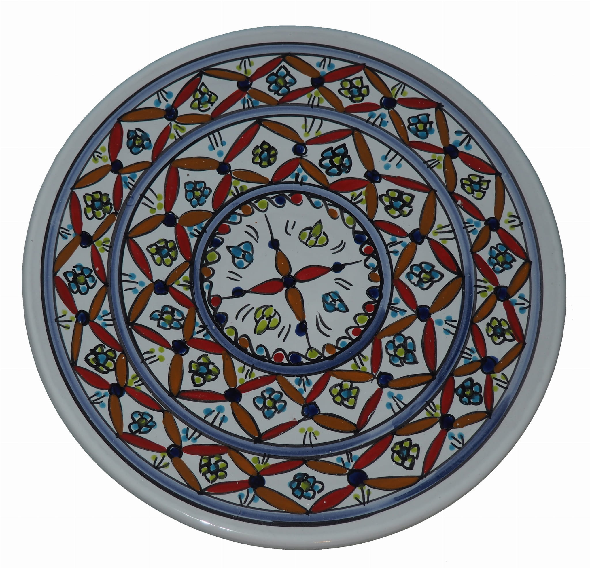 Orientalny talerz malowany jest w berberyjskie wzory. Przepiękna, niebanalna ozdoba Twojego stołu - ozdobna ceramika prosto z Tunezji.