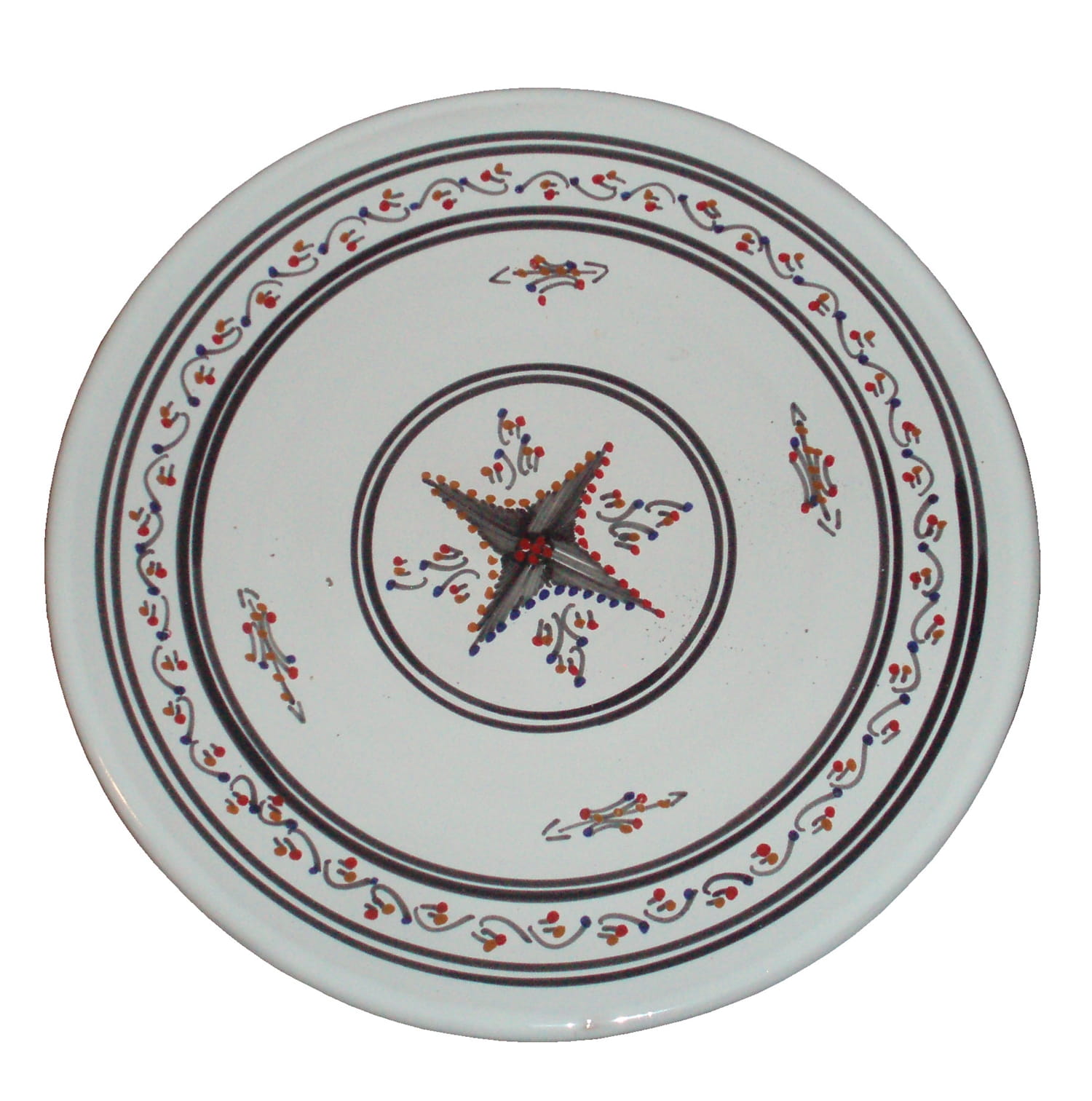 Orientalny talerz malowany jest w berberyjskie wzory. Przepiękna, niebanalna ozdoba Twojego stołu - ozdobna ceramika prosto z Tunezji.