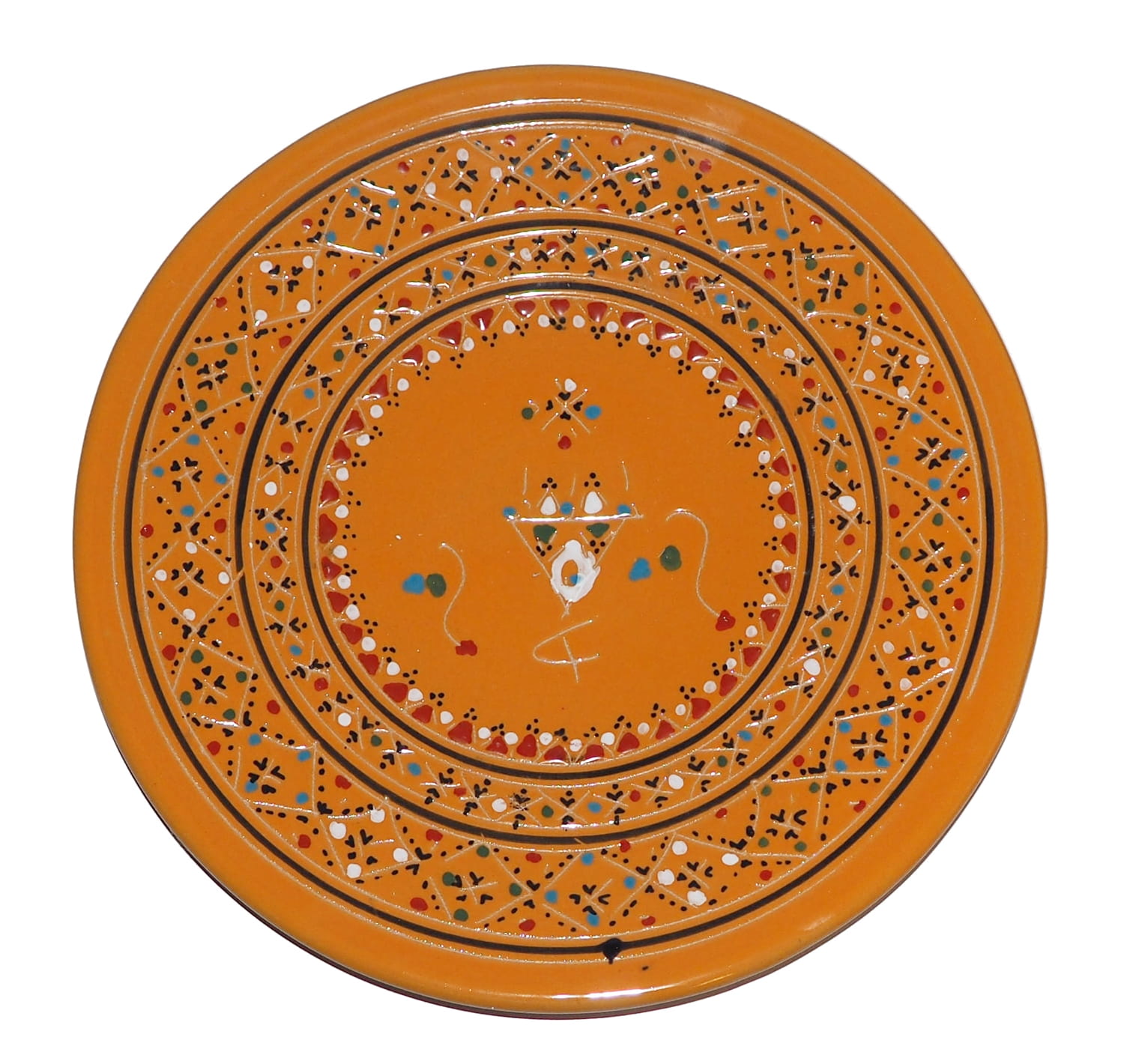 Orientalny talerz malowany jest w berberyjskie wzory. Przepiękna, niebanalna ozdoba Twojego stołu - ozdobna ceramika prosto z Tunezji.