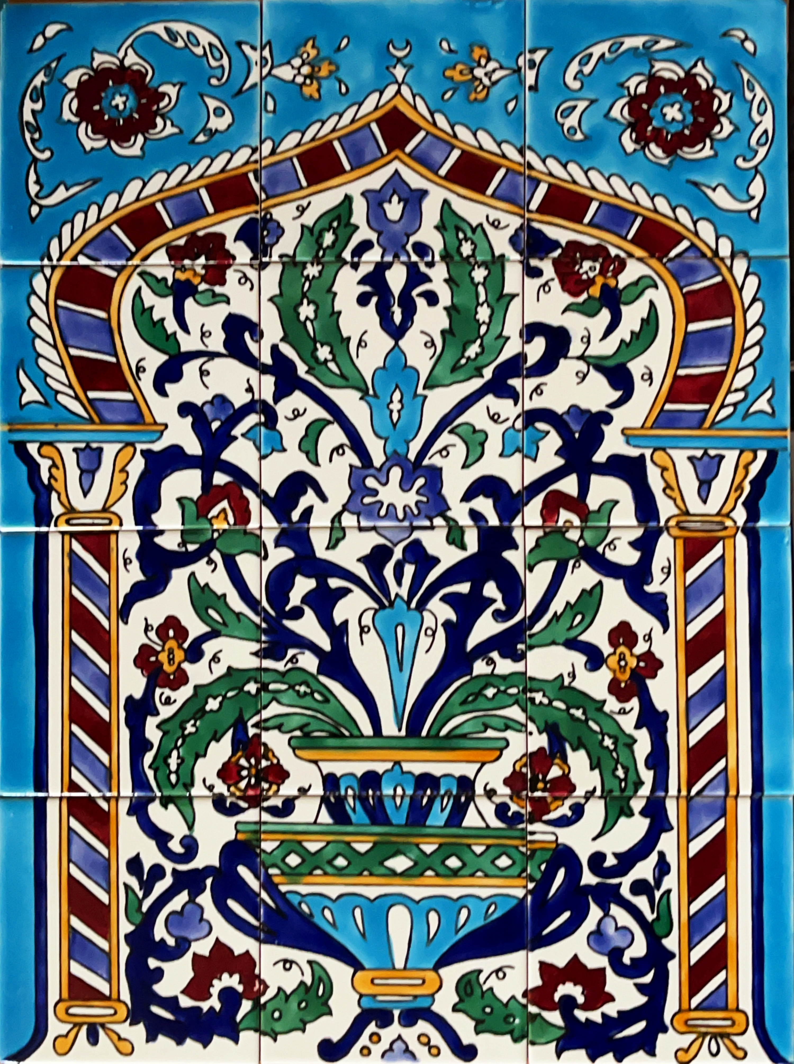 PRZEPIĘKNY ORYGINALNY ZESTAW 12 ARABSKICH KAFLI SKŁADAJĄCYCH SIĘ NA JEDEN ORIENTALNY WZÓR.