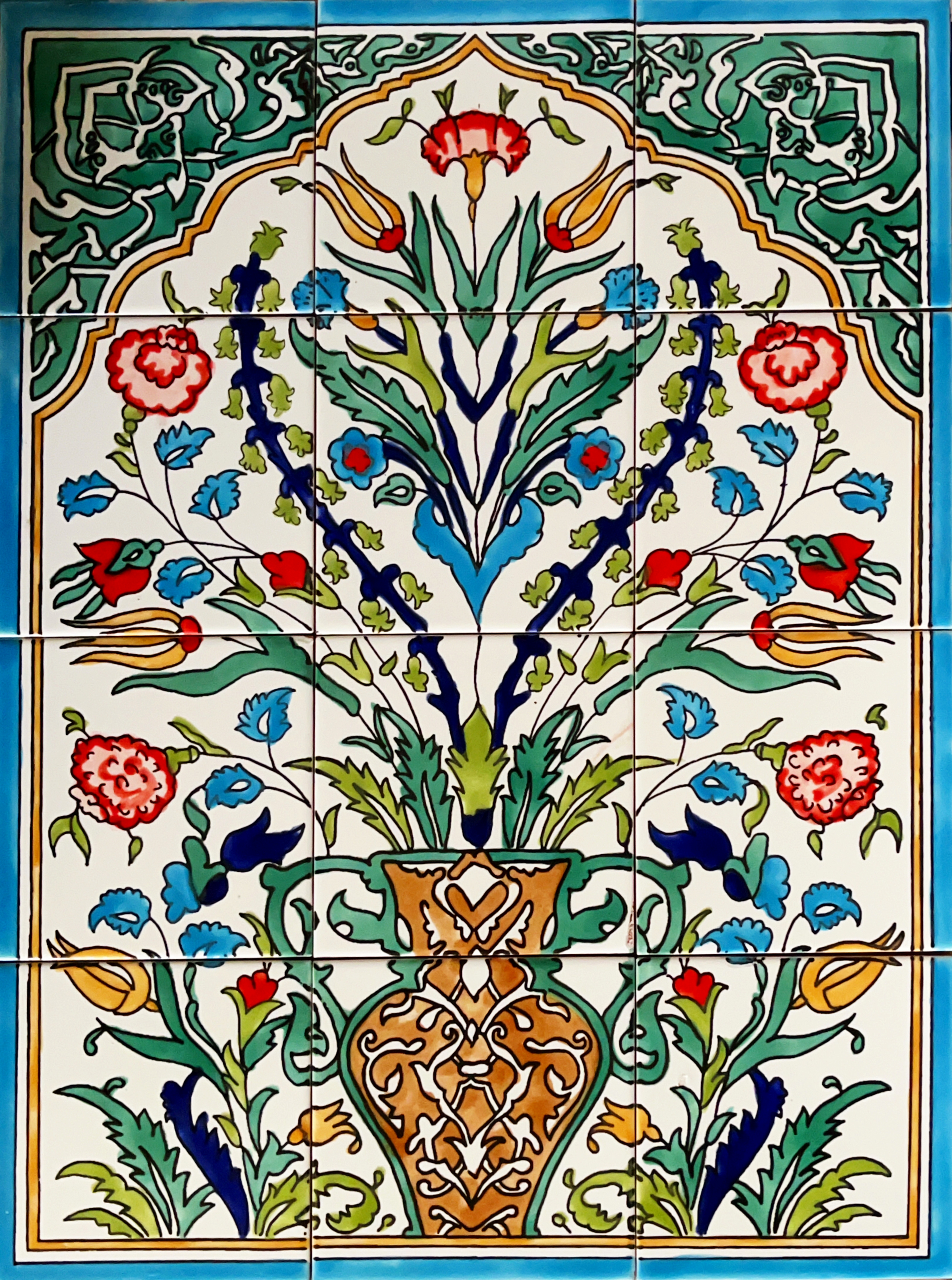 PRZEPIĘKNY ORYGINALNY ZESTAW 12 ARABSKICH KAFLI SKŁADAJĄCYCH SIĘ NA JEDEN ORIENTALNY WZÓR.